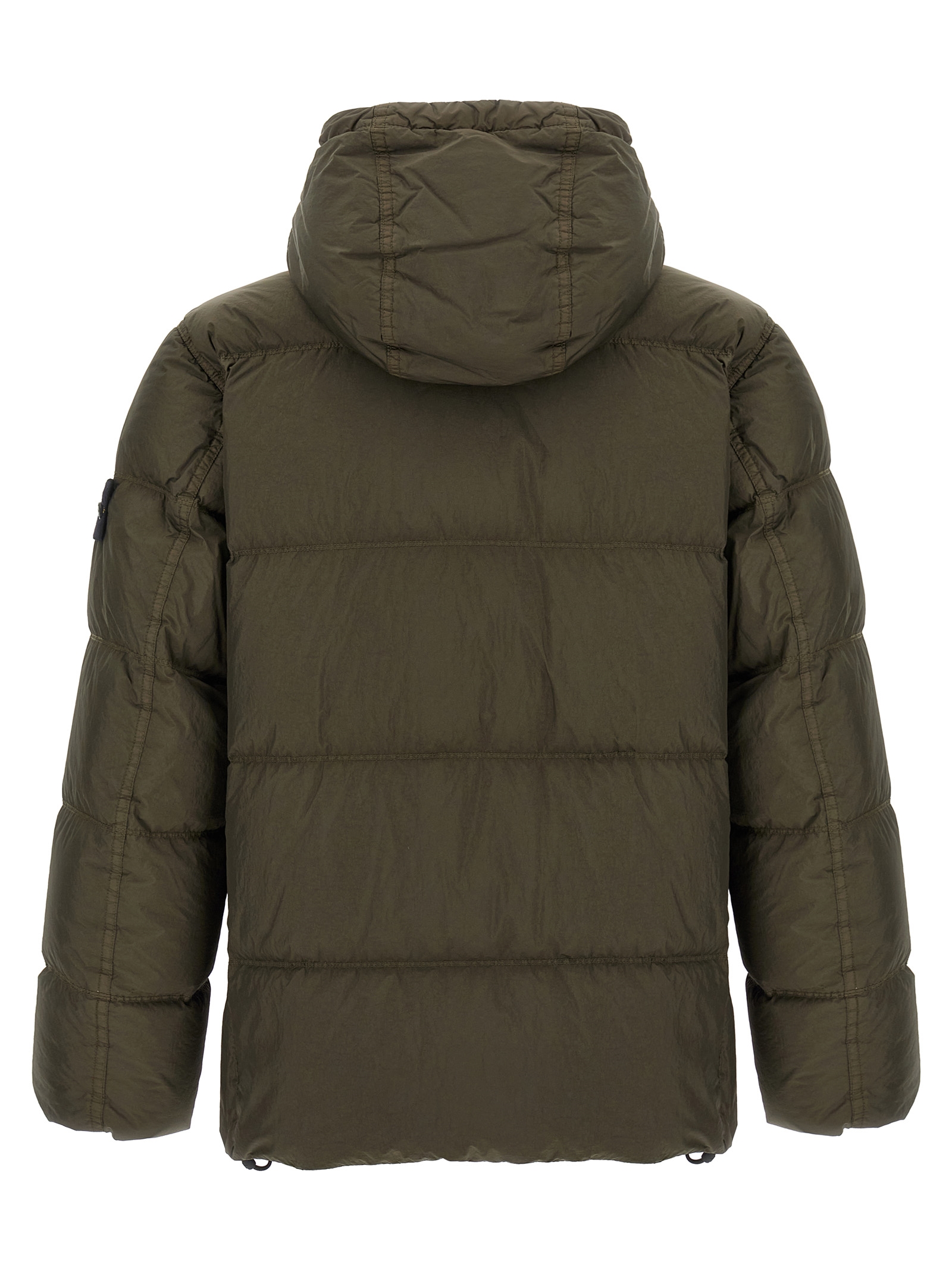 Short, padded ‘Crinkle Reps NY’ parka with hood, zip closure, front pockets with snap buttons, adjustable elastic drawstring at the hem, inner knitted cuffs.