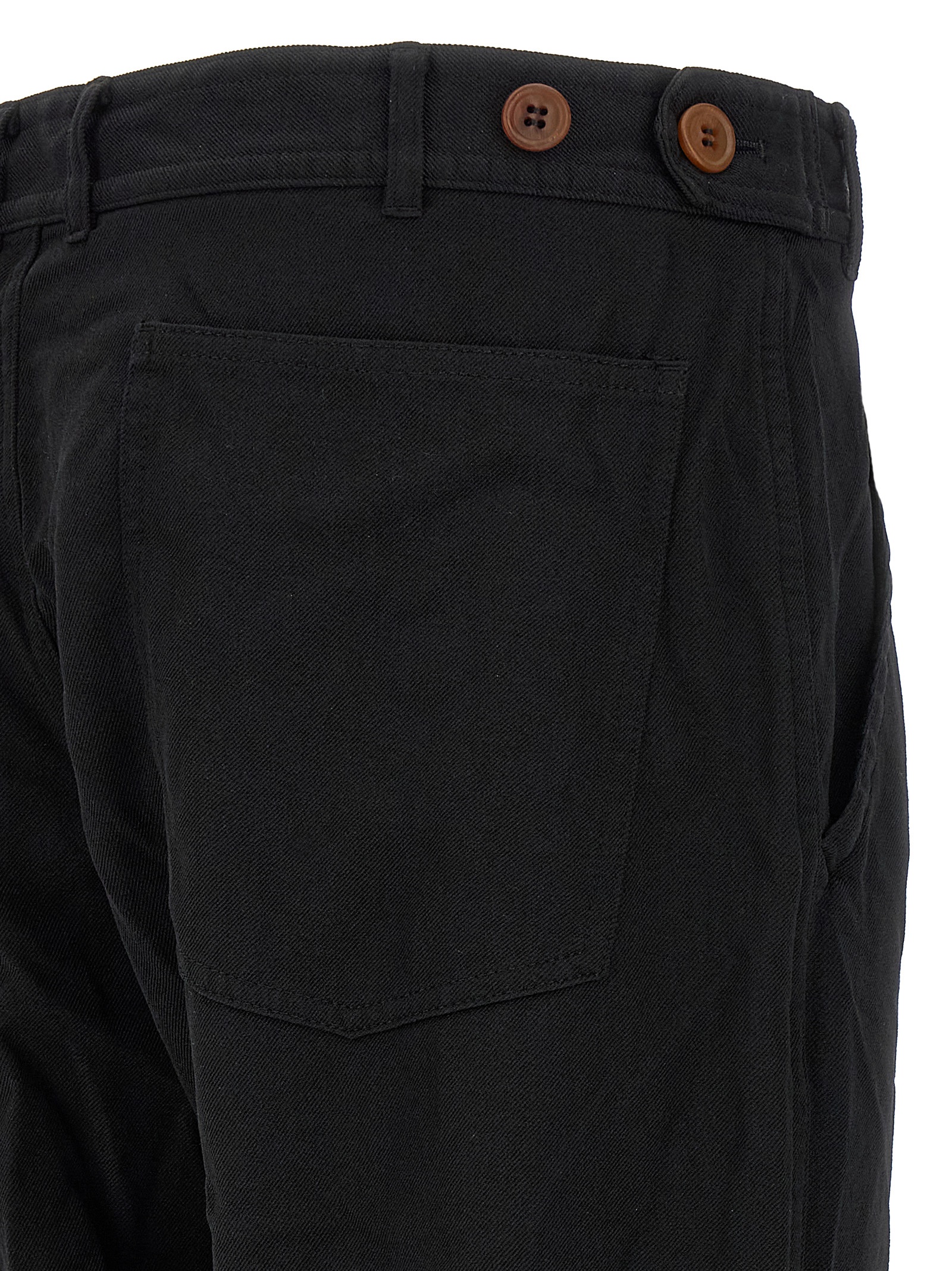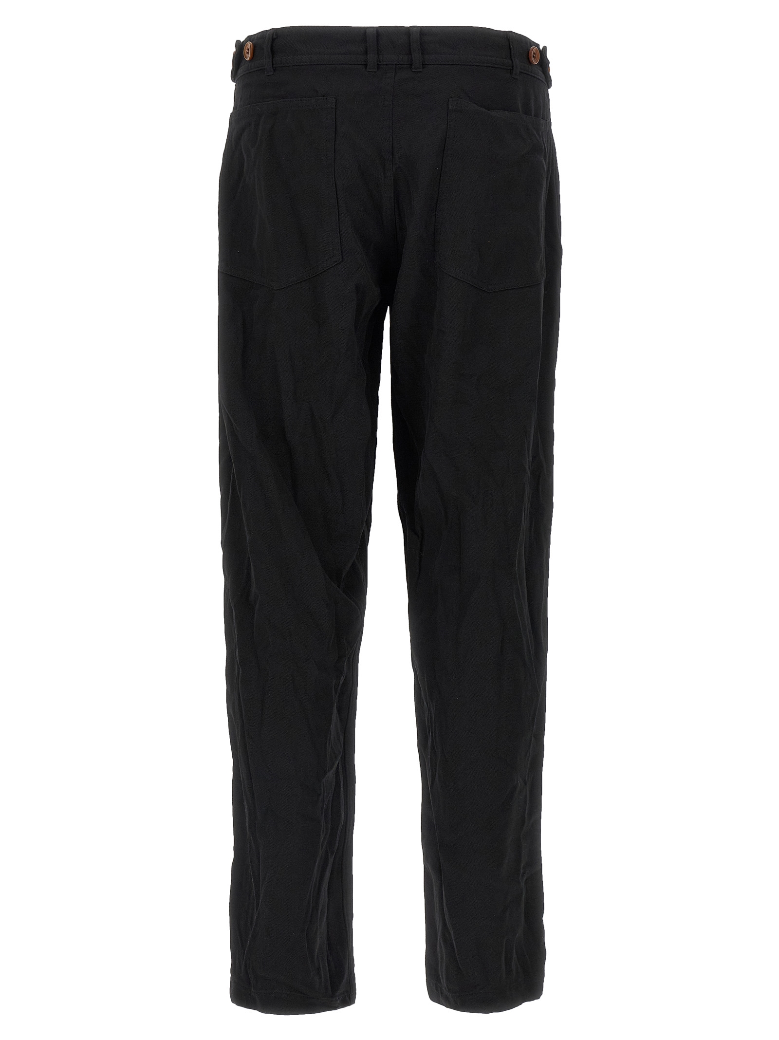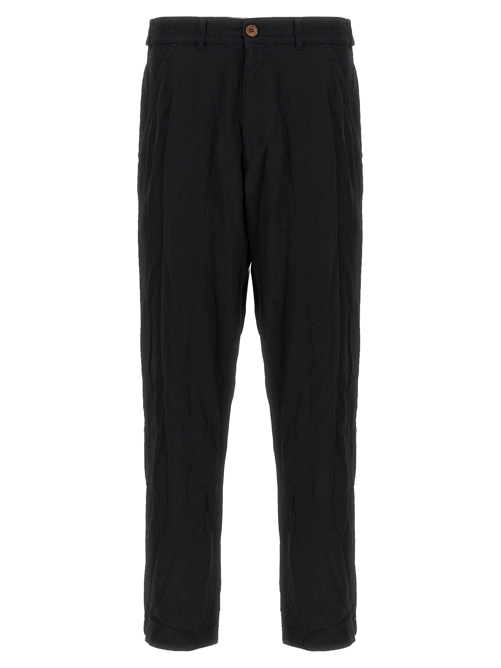 Crumpled fabric trousers, zip and button closure, pockets, wide and straight leg.