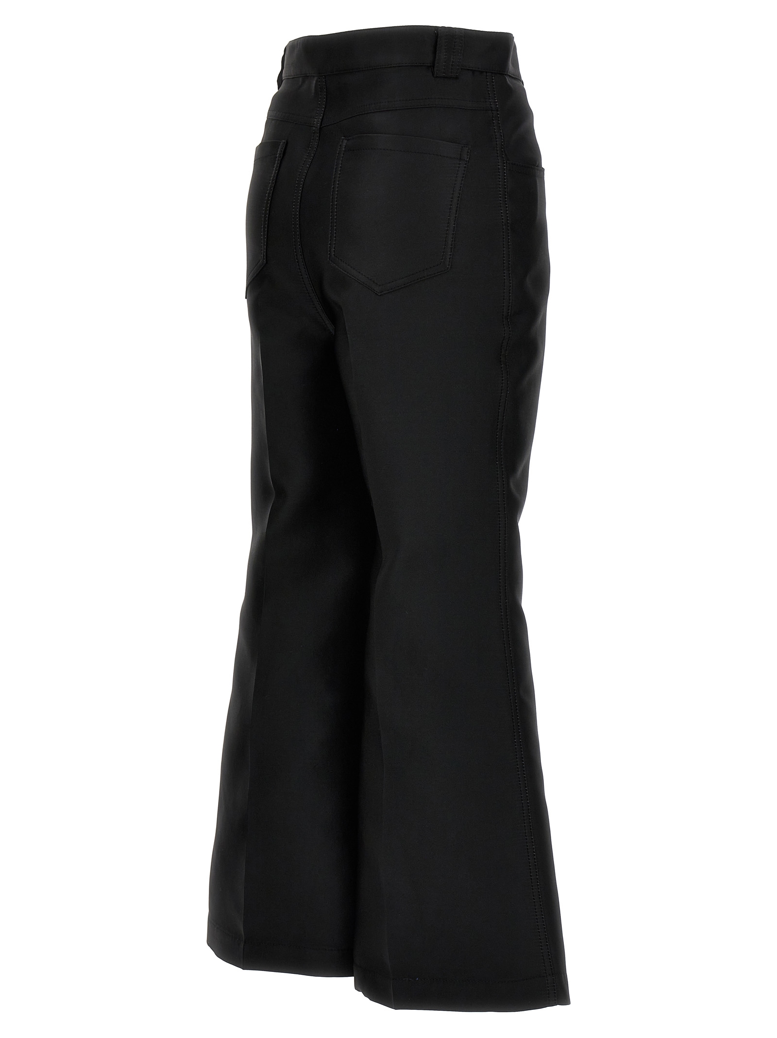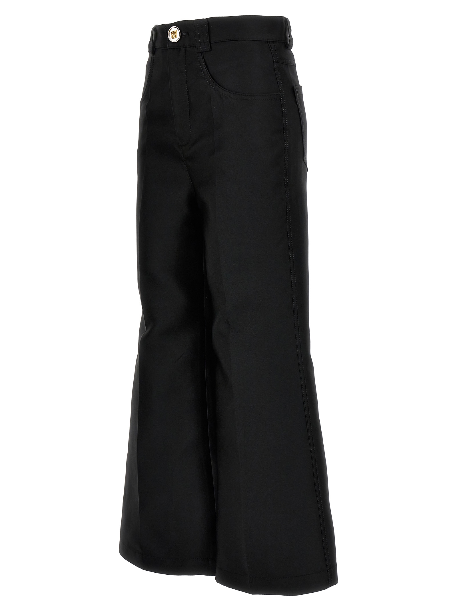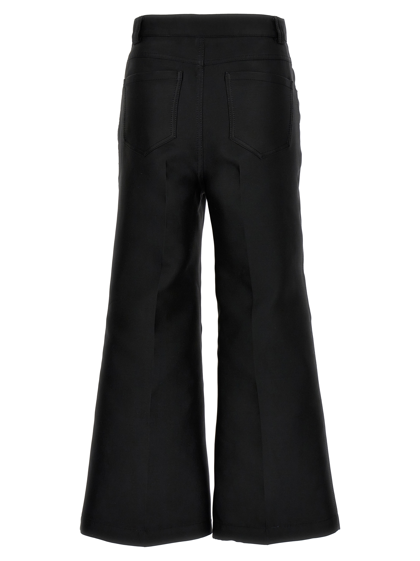 Cropped silk blend pants, zip and button closure, central pleat leg, pockets.