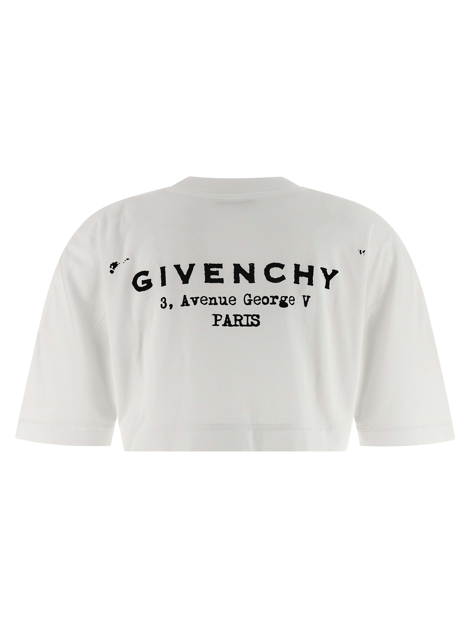 Cropped cotton crewneck t-shirt with print on the front and back, and short sleeves.