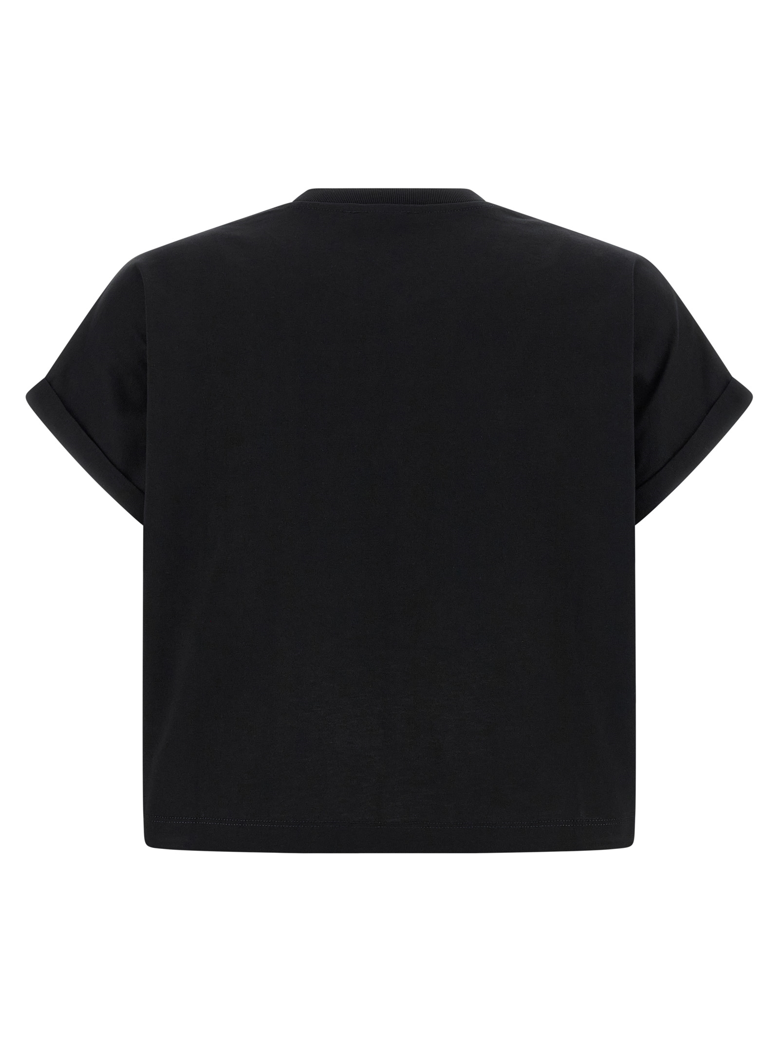 Cropped cotton crewneck t-shirt with short sleeves and turn-ups, front logo print.