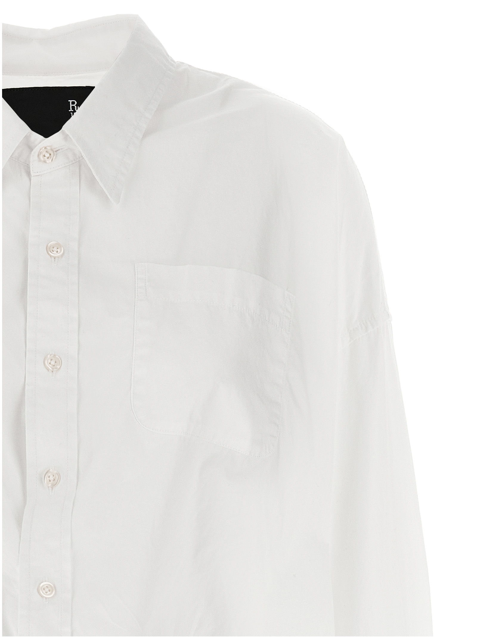 ‘Crossover Bubble’ cotton shirt with button closure, breast pocket, long sleeves with cuffs and dropped shoulders, elastic hem.