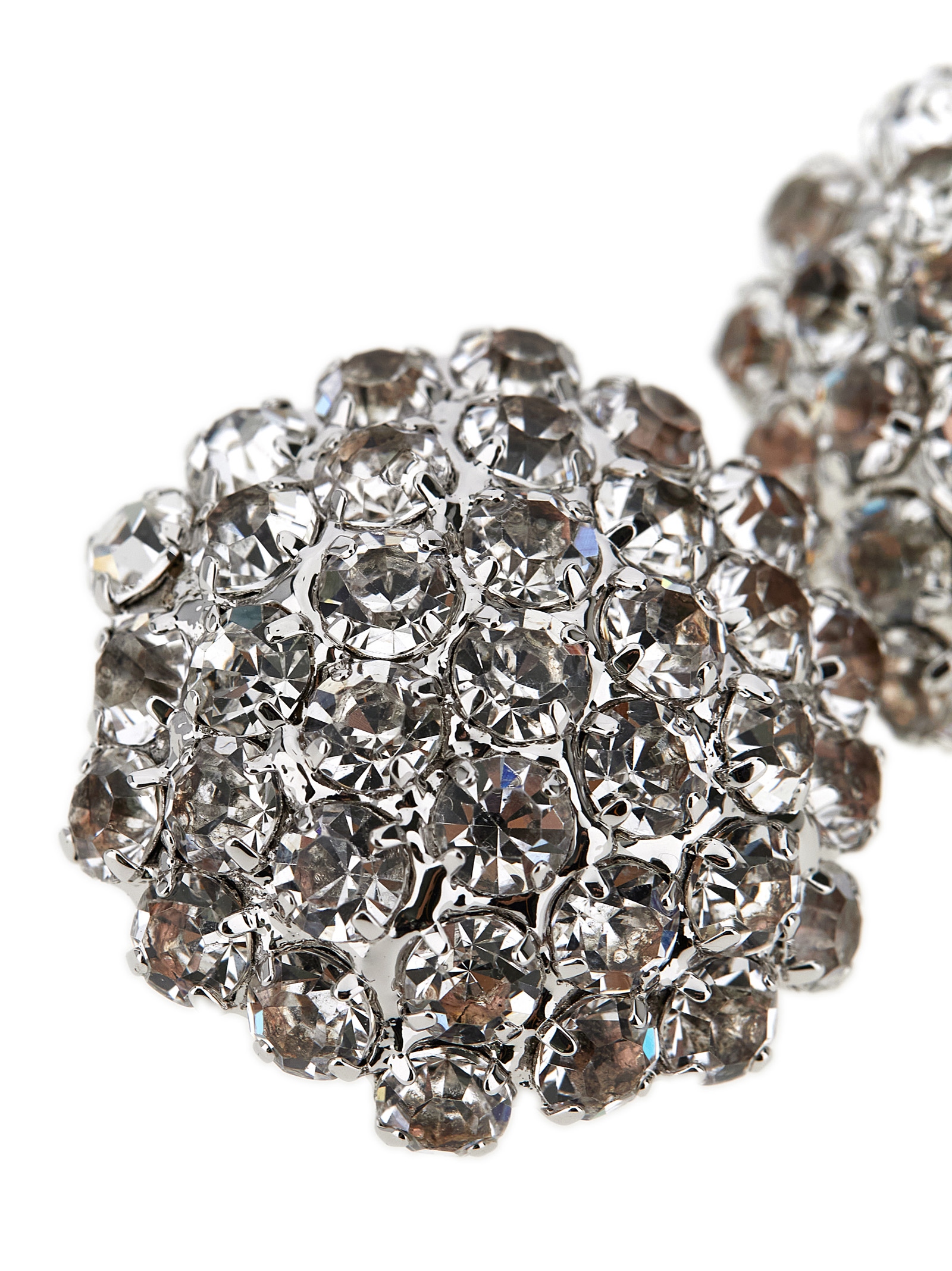 ‘Crystal Flower’ earrings in metal and all-over crystals, button style and pin closure.