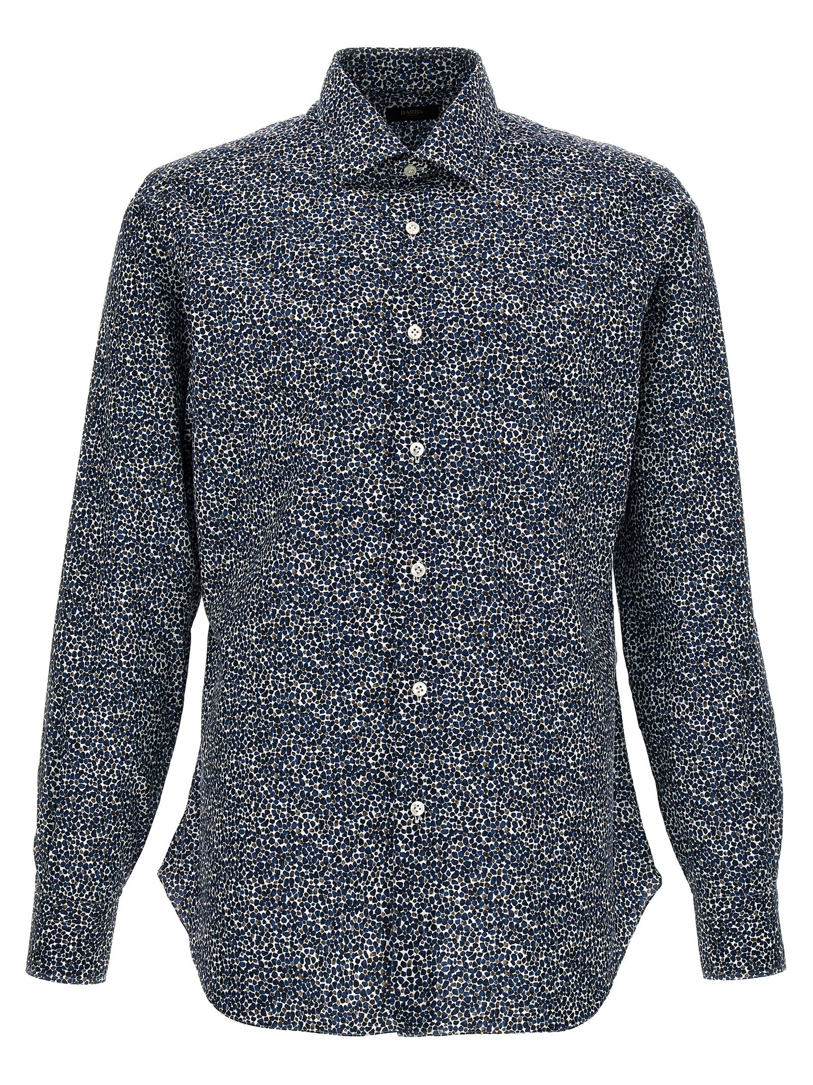 ‘Culto’ printed cotton shirt with button closure, long cuffed sleeves.