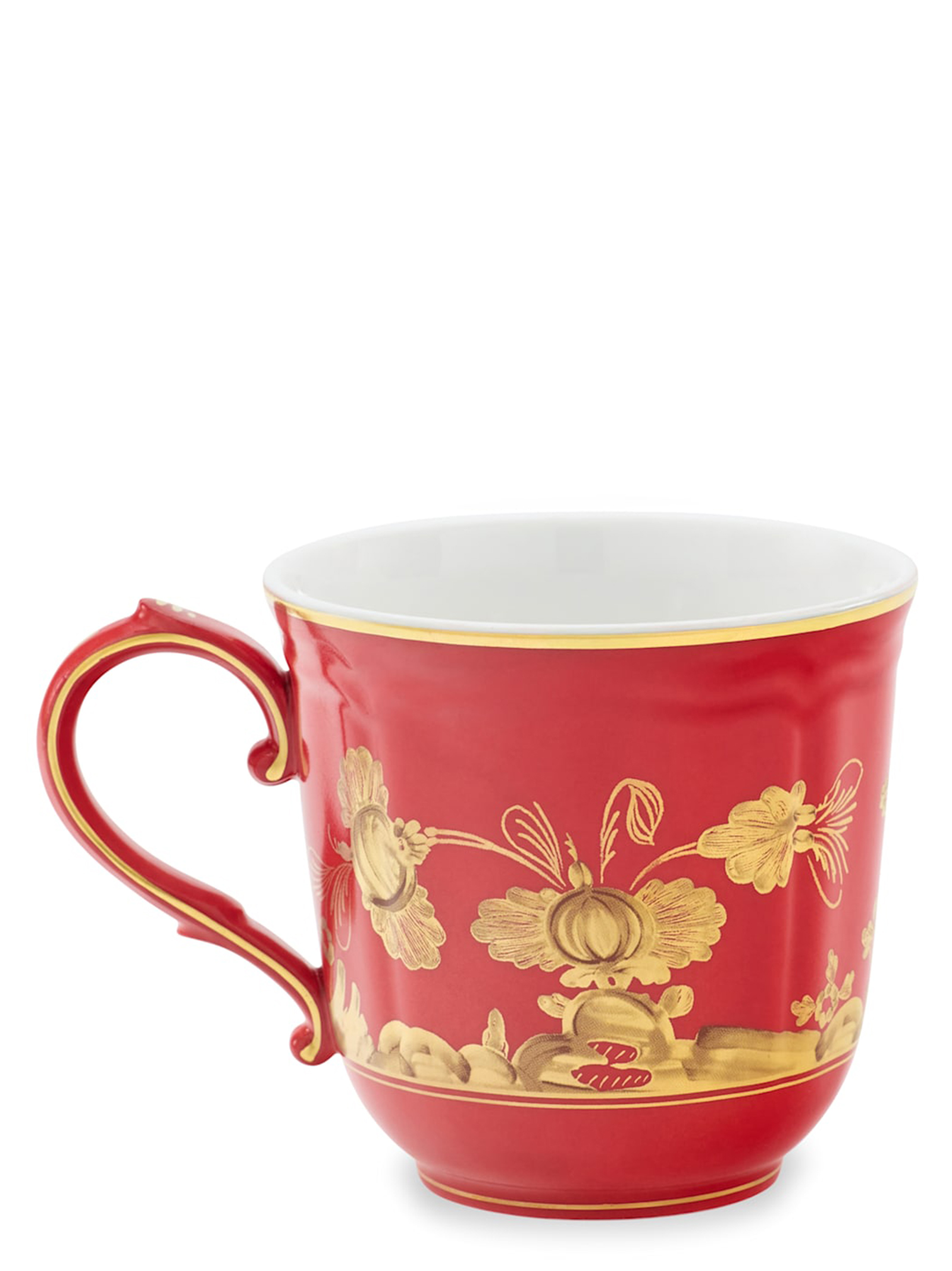 Porcelain mug mug with pure red and gold Rubrum decoration. ‘Oriente Italiano – Gold Collection’ collection.