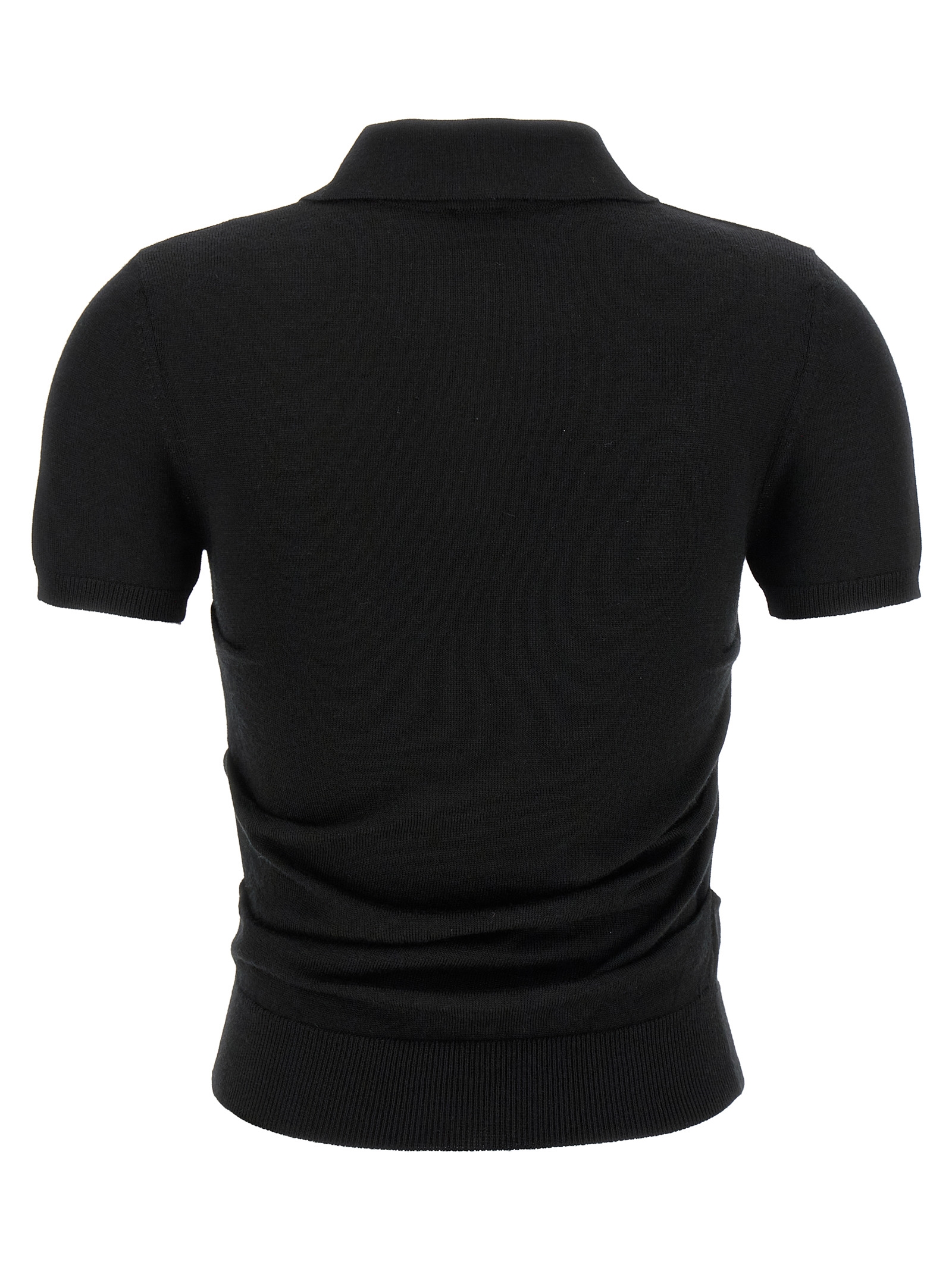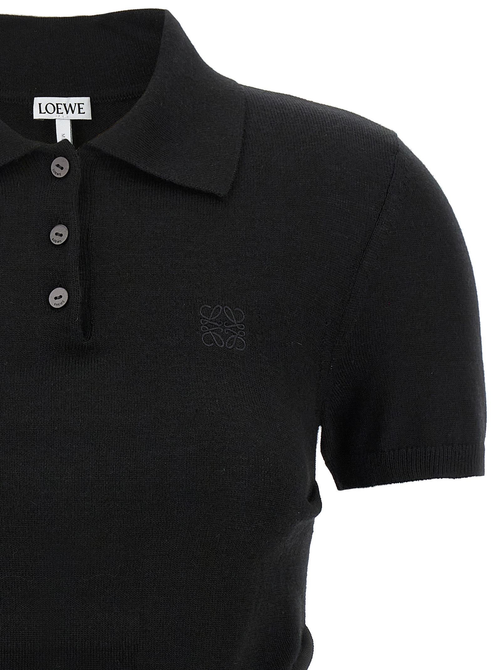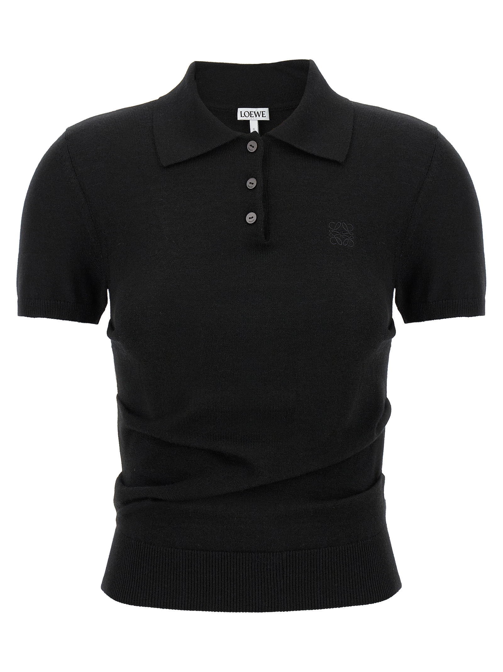 Ultralight jersey-stitch cashmere and silk polo shirt, tone-on-tone Anagram embroidered logo on the front, crinkled sides, collar and buttons, and short sleeves.