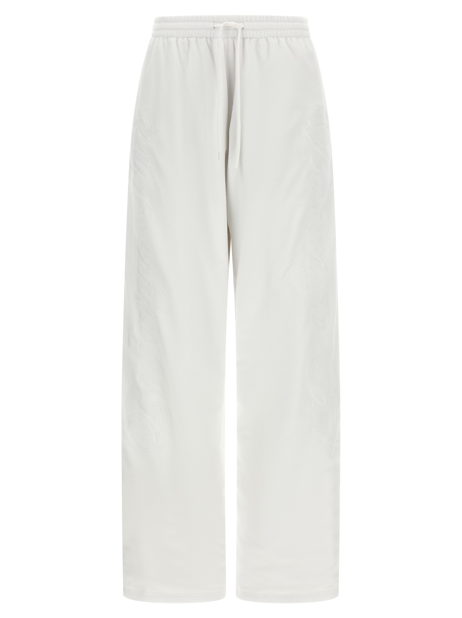 Reversible pants in nylon tracksuit canvas and dry fleece, front ‘Cursive’ embroidery, straight leg, drawstring elastic waistband, pockets.
