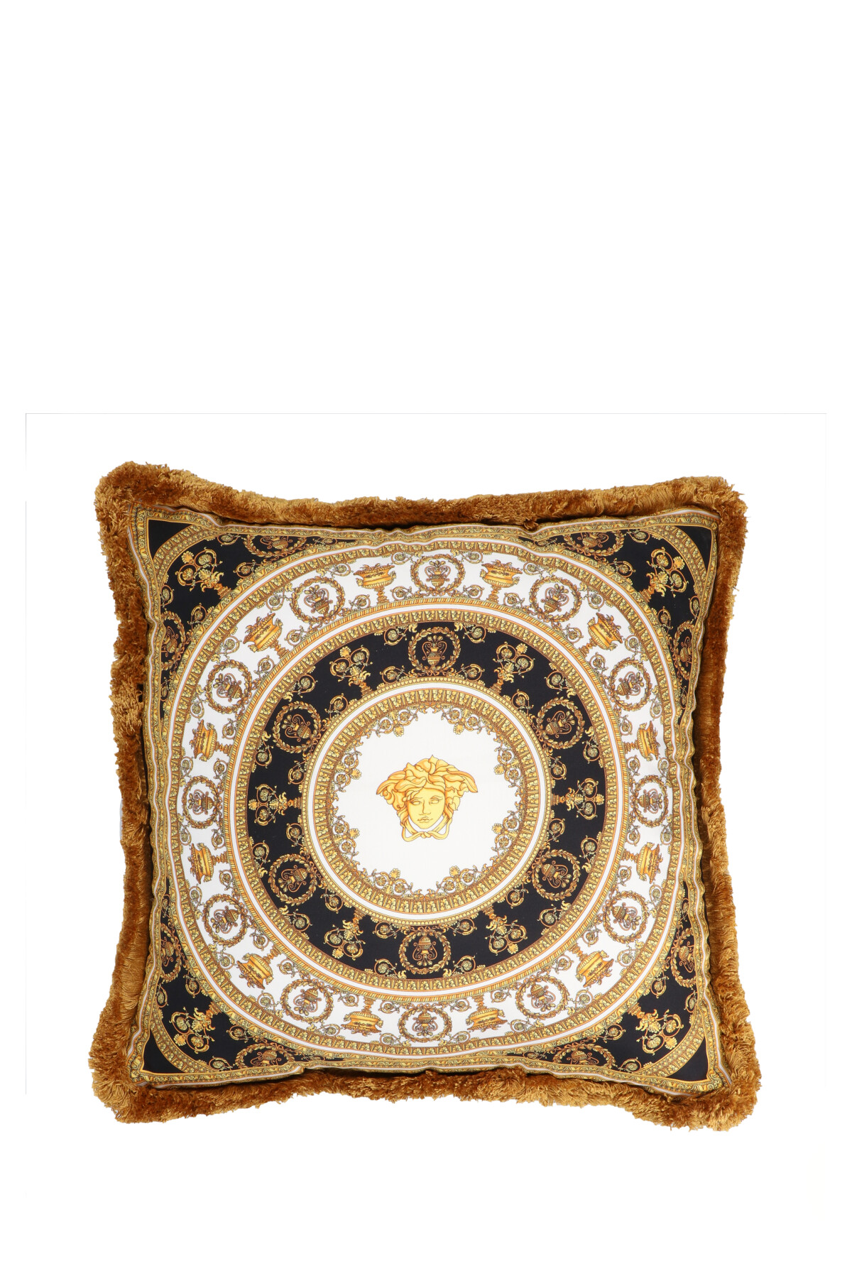 Silk cushion with fringes and an all over ‘Barocco’ print.