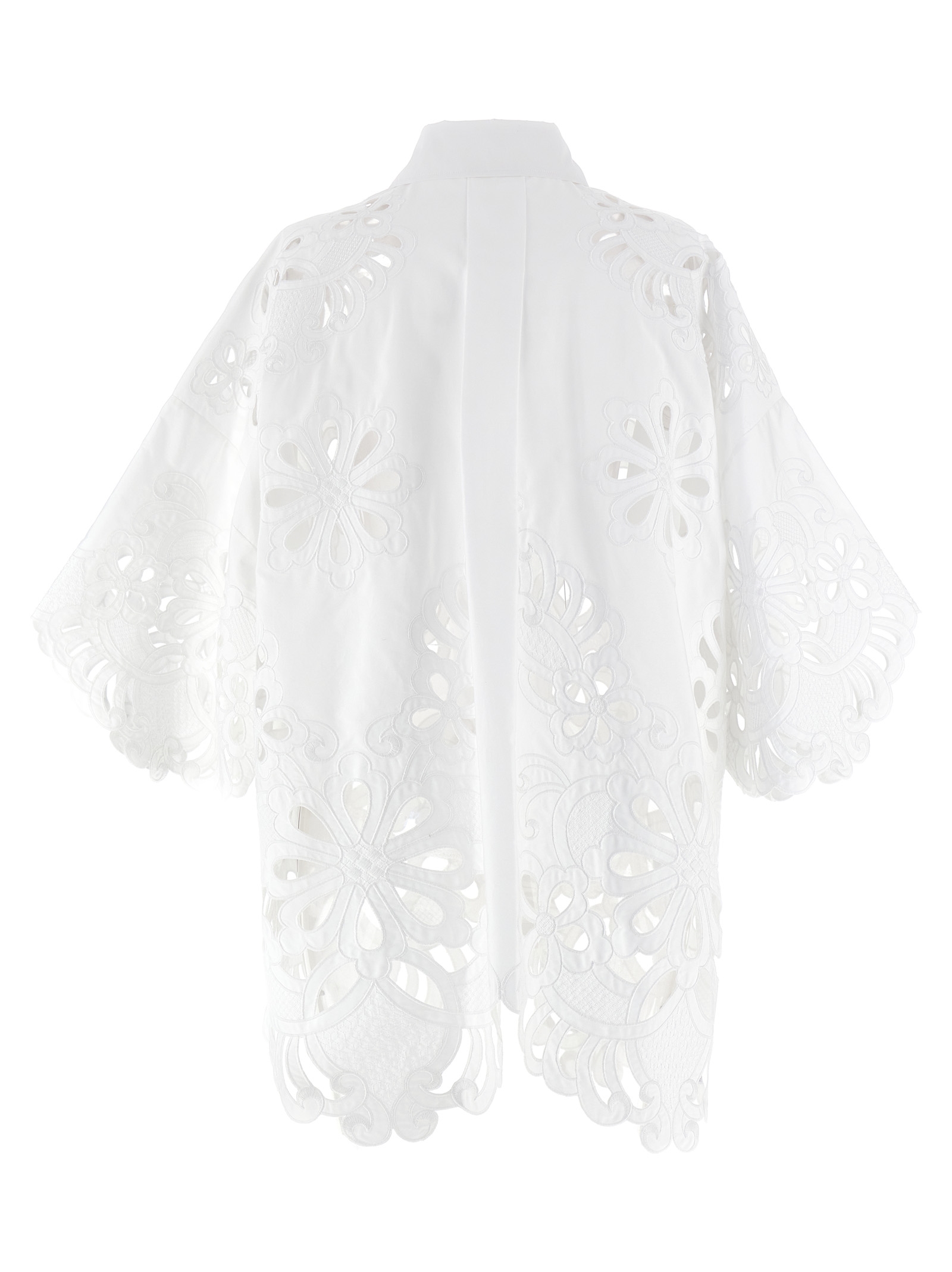 Cotton shirt with all-over cut-out embroidery, button closure, wide 3/4 sleeves.