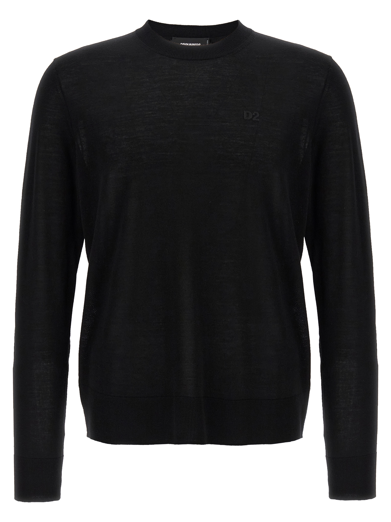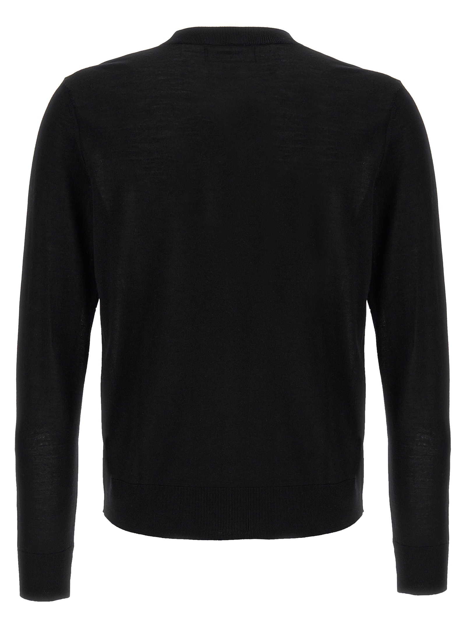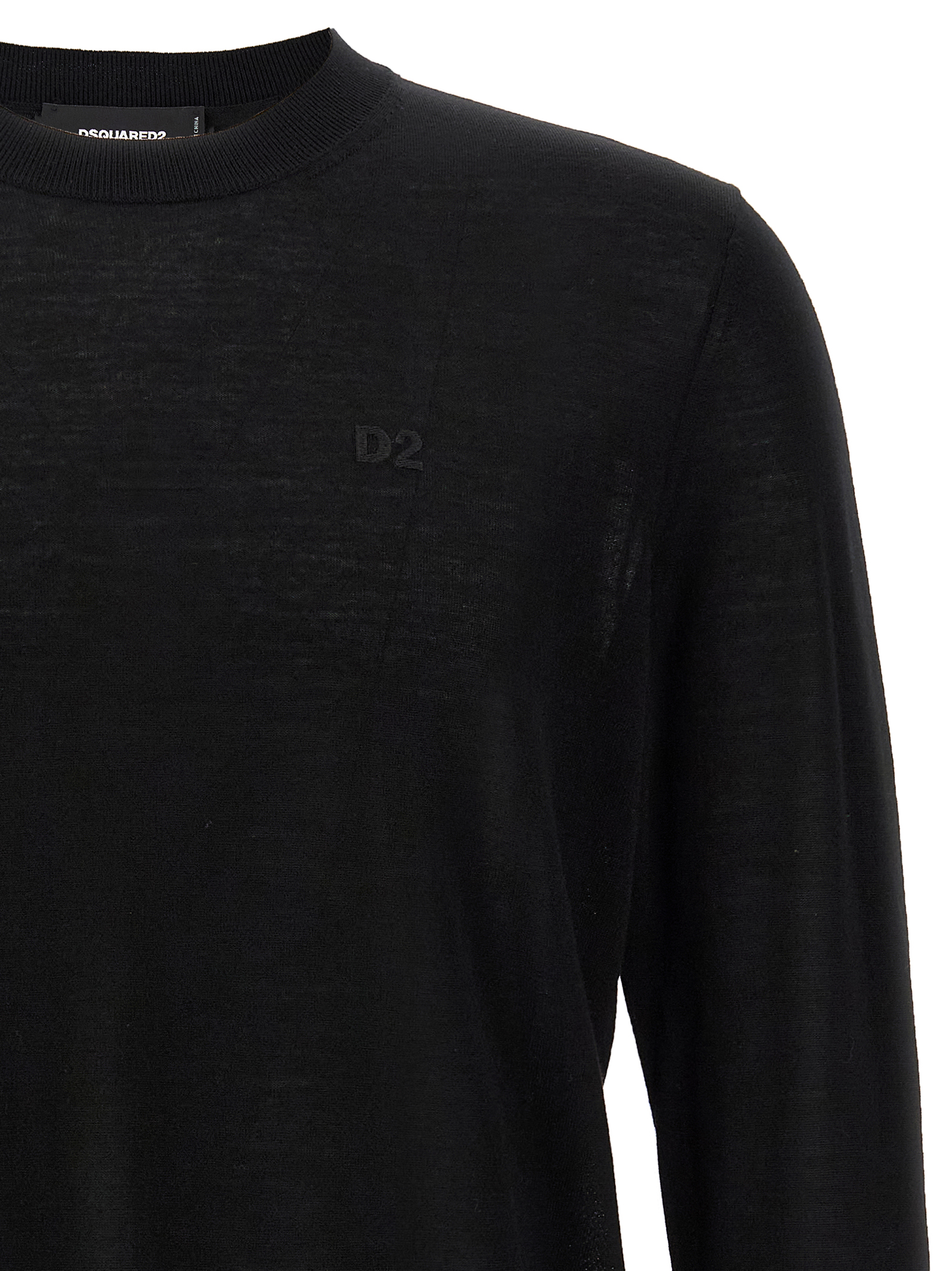 Thin wool sweater, crew neck, logo embroidery detail, long cuffed sleeves