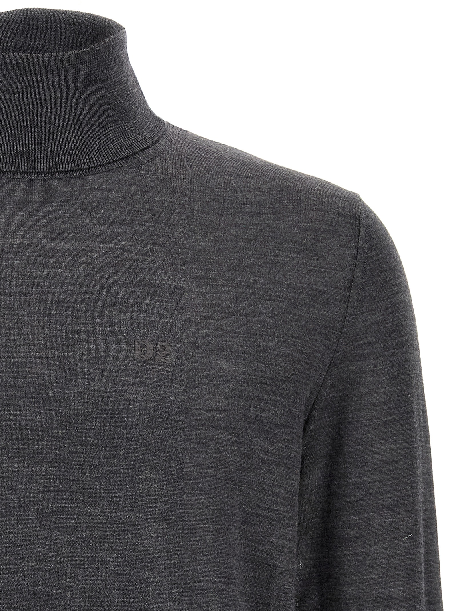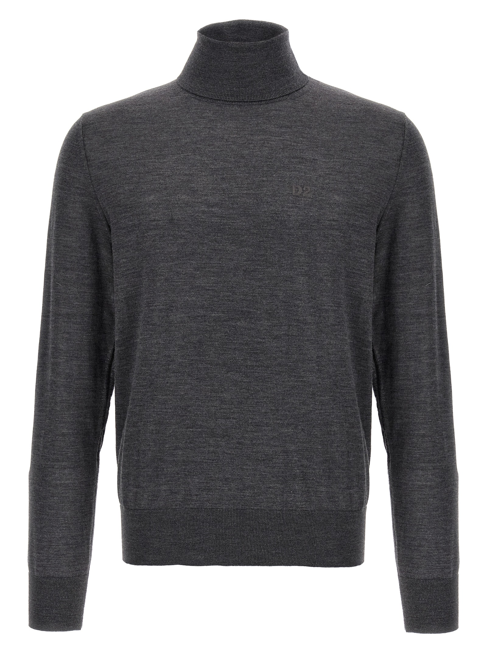 ‘D2’ thin wool turtleneck sweater with front logo embroidery, long cuffed sleeves.