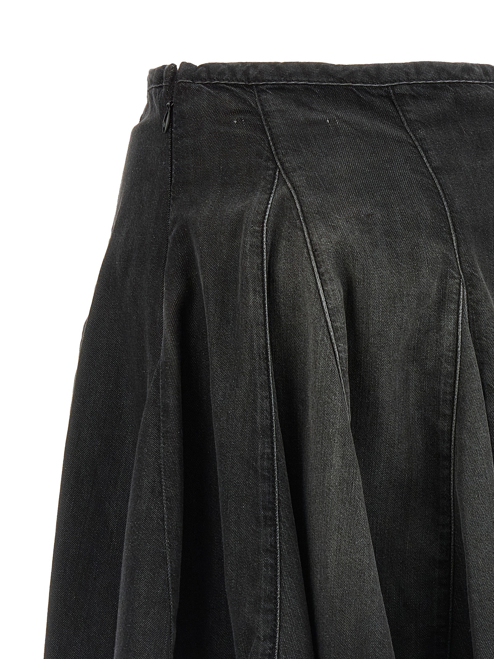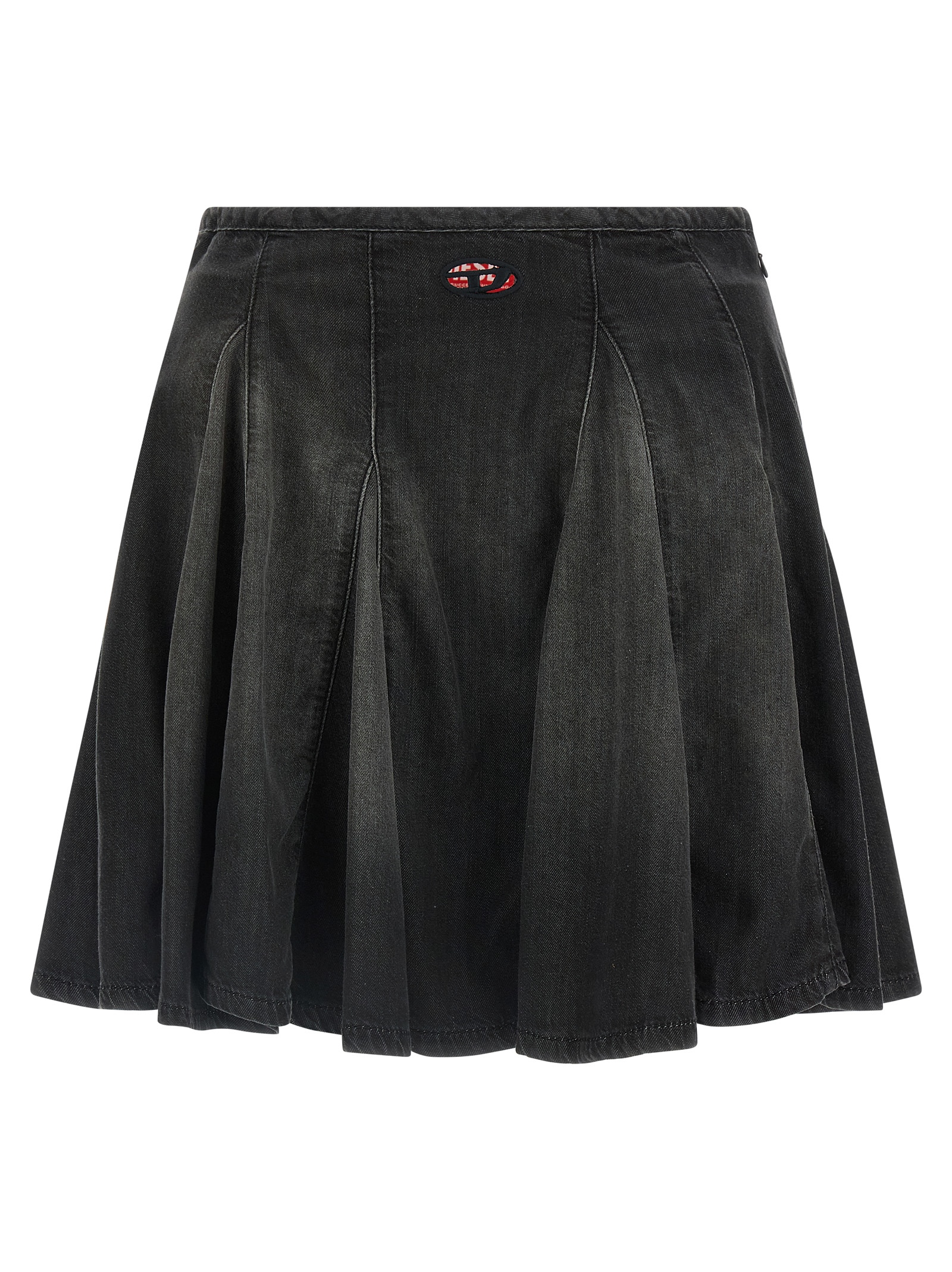 Mini skirt ‘De-Spiki-S’ in lightweight cotton blend denim and TENCEL™ Lyocell stonewashed, pleated model, Oval D cut-out logo embroidery on the front, side zip closure.