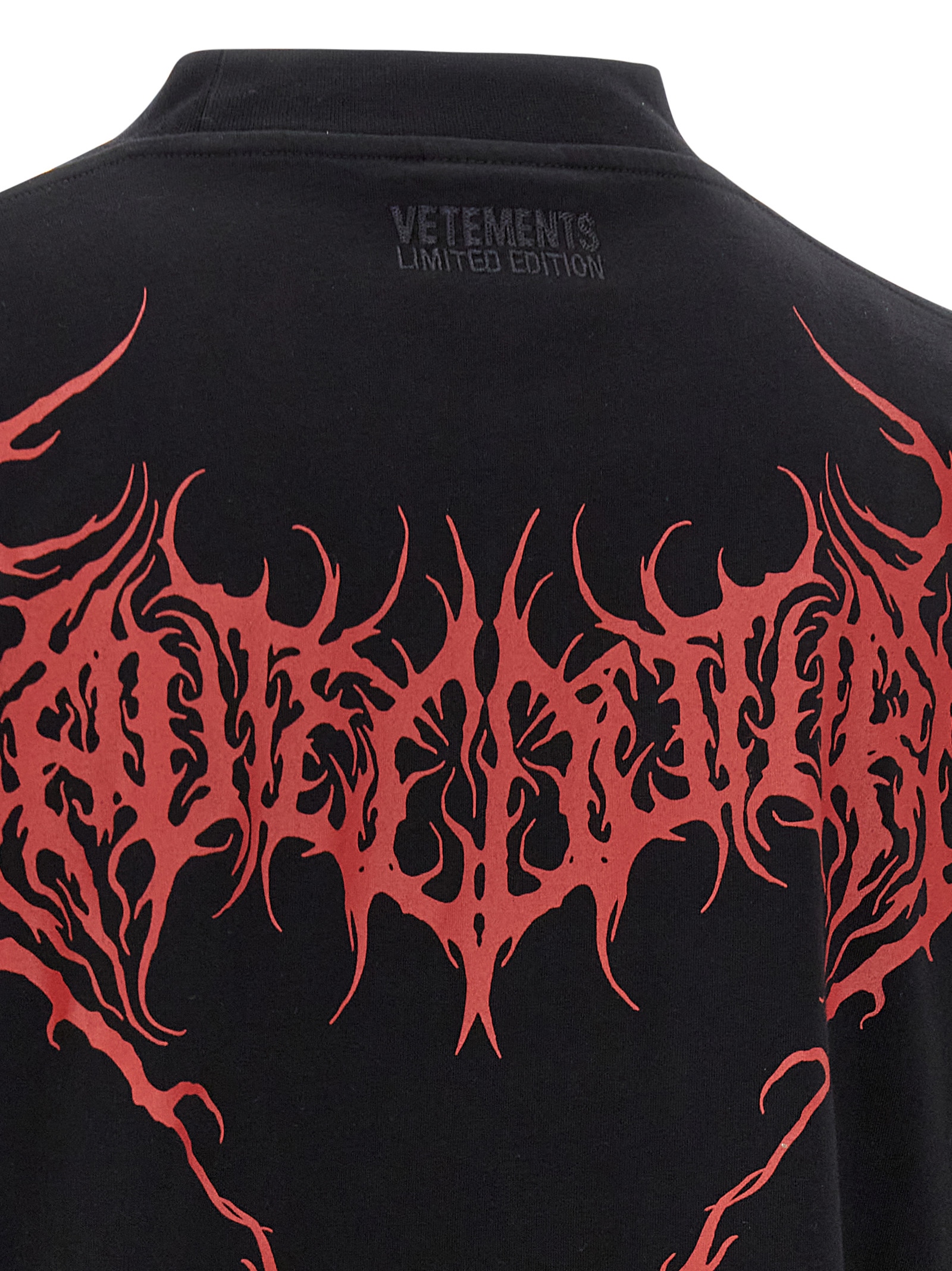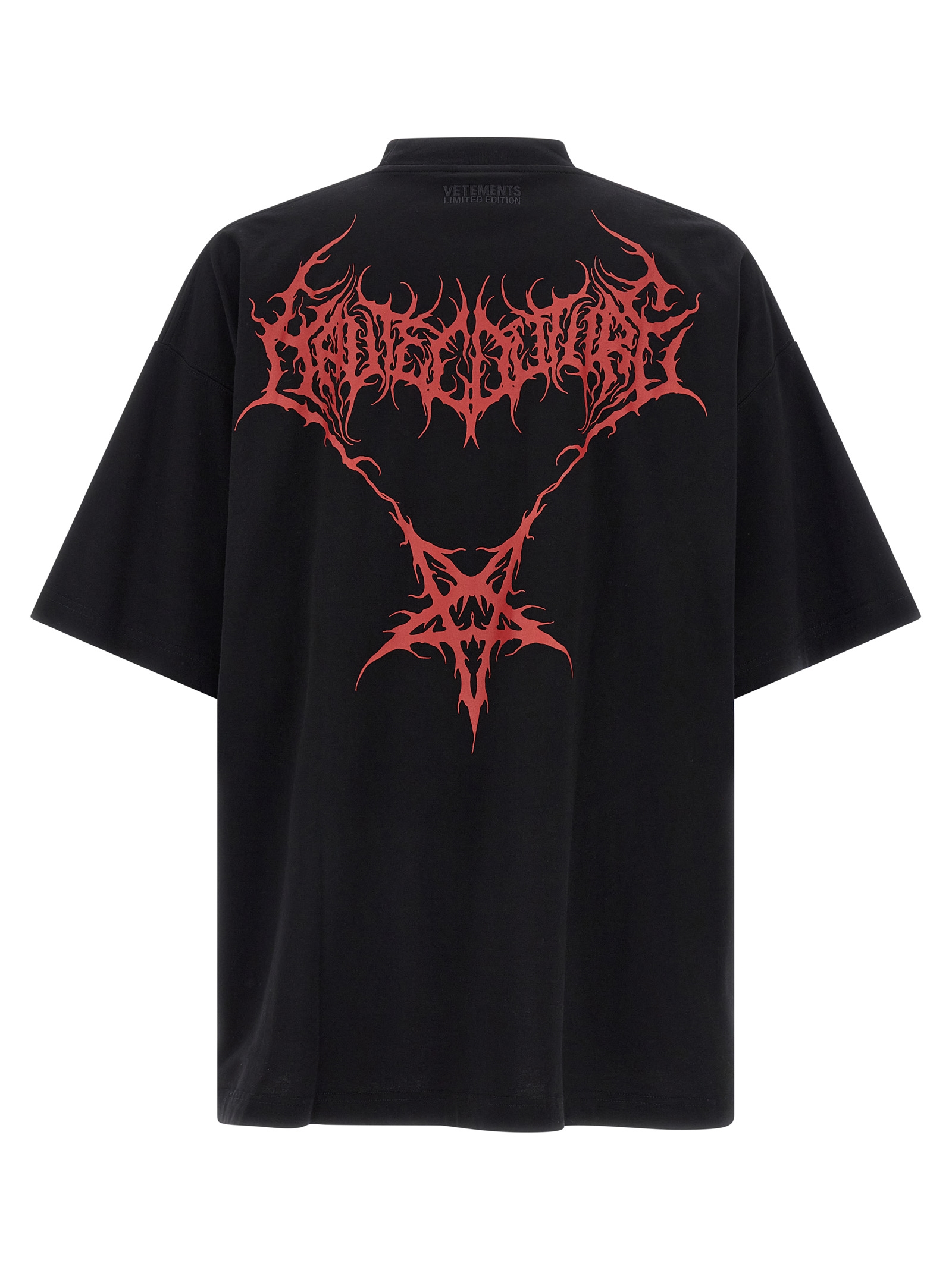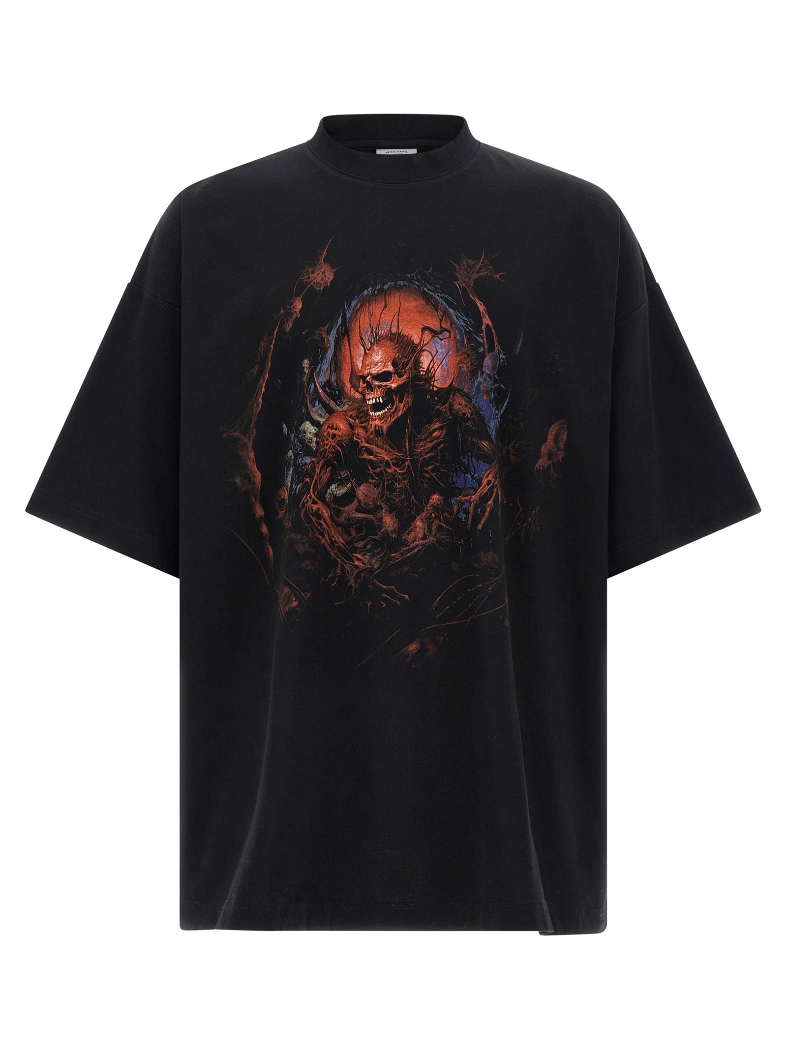 ‘Death Metal’ cotton crew neck t-shirt with front and back print, oversized fit, short sleeves.