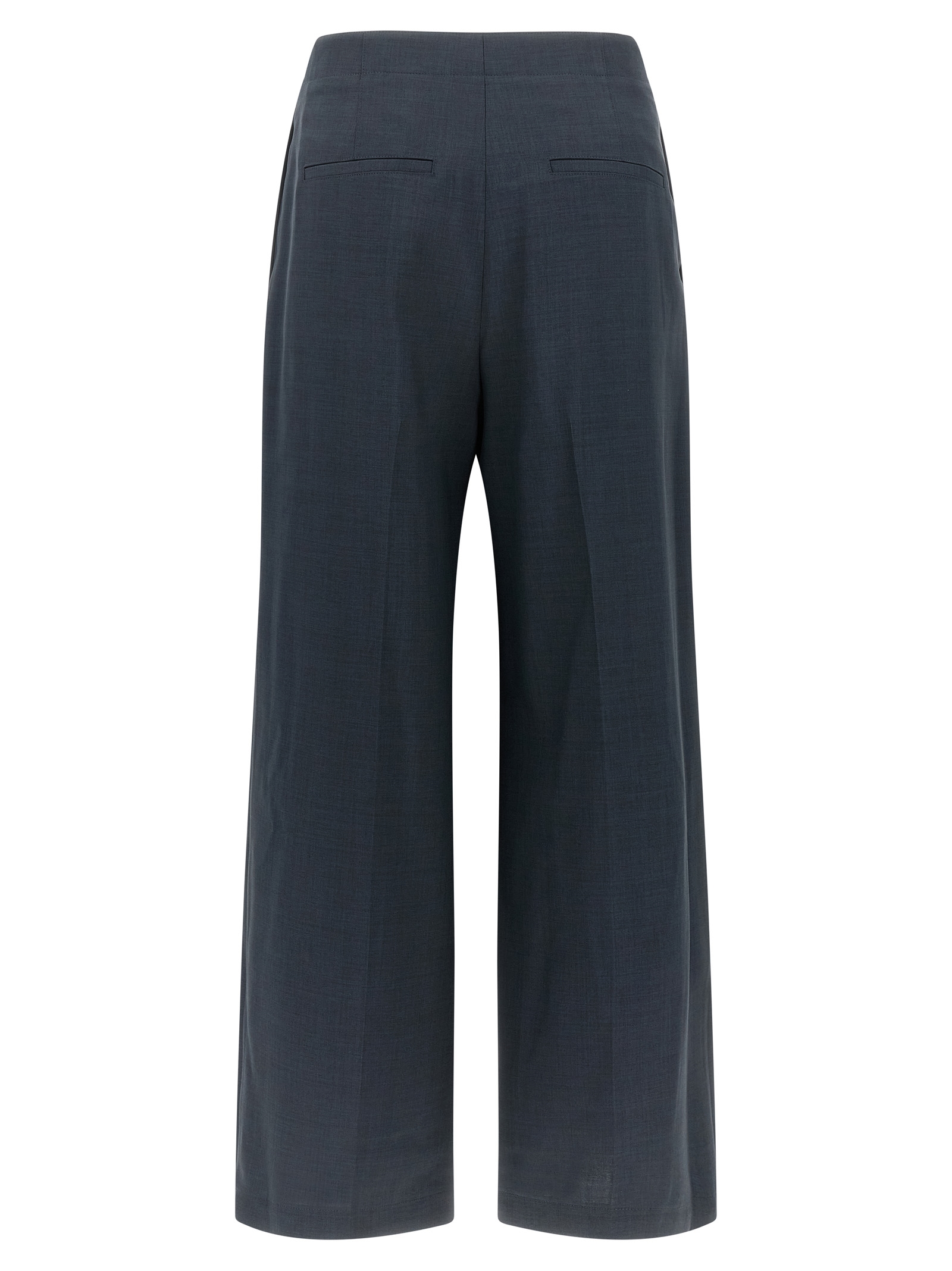 ‘Deep Pleat’ City Twill pants with front pleated pleat, high waist style with wide leg, hook and button zip closure, pockets.