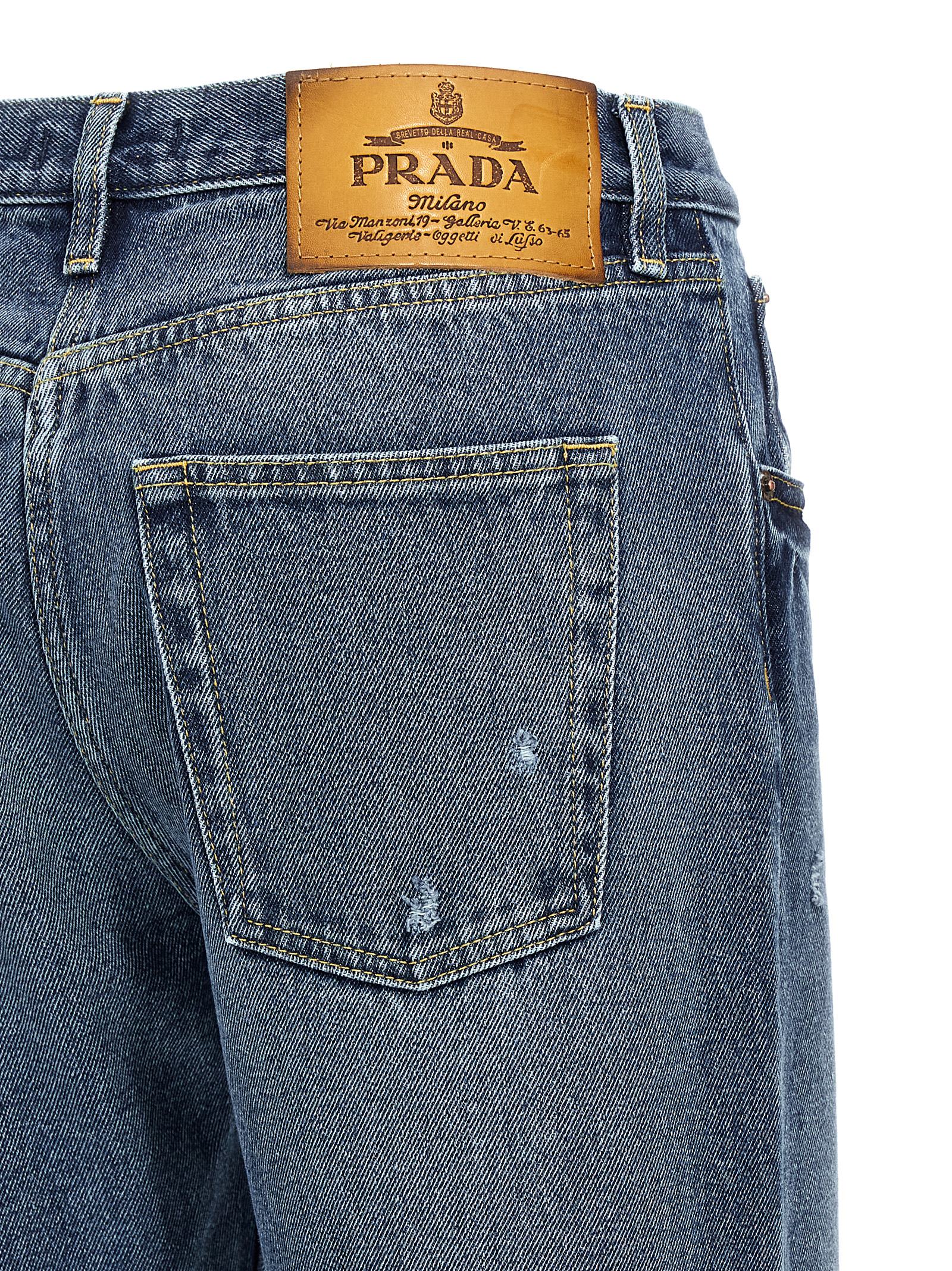 Delavé cotton denim jeans, five pockets, straight leg, button closure, leather logo label on the back.