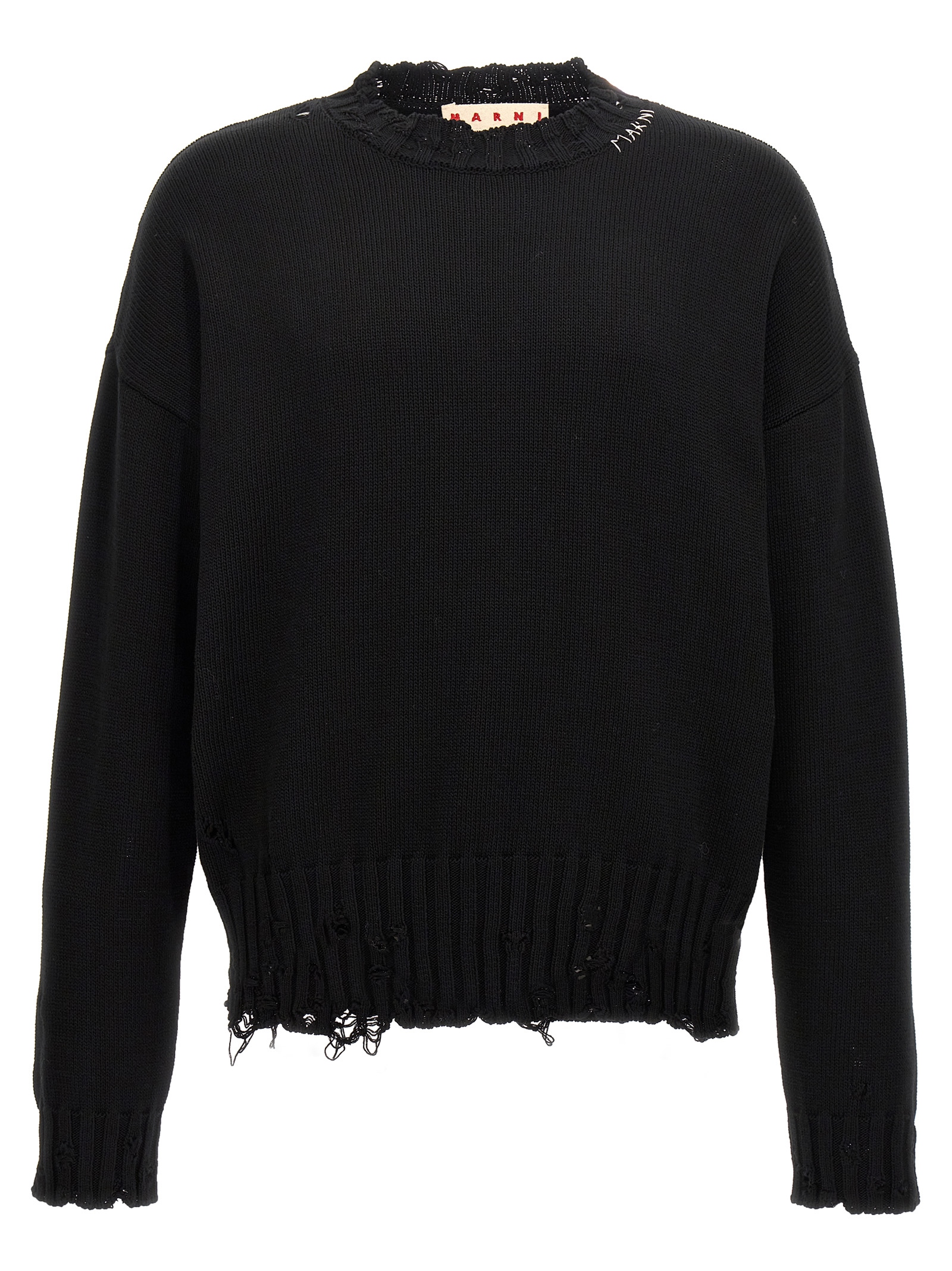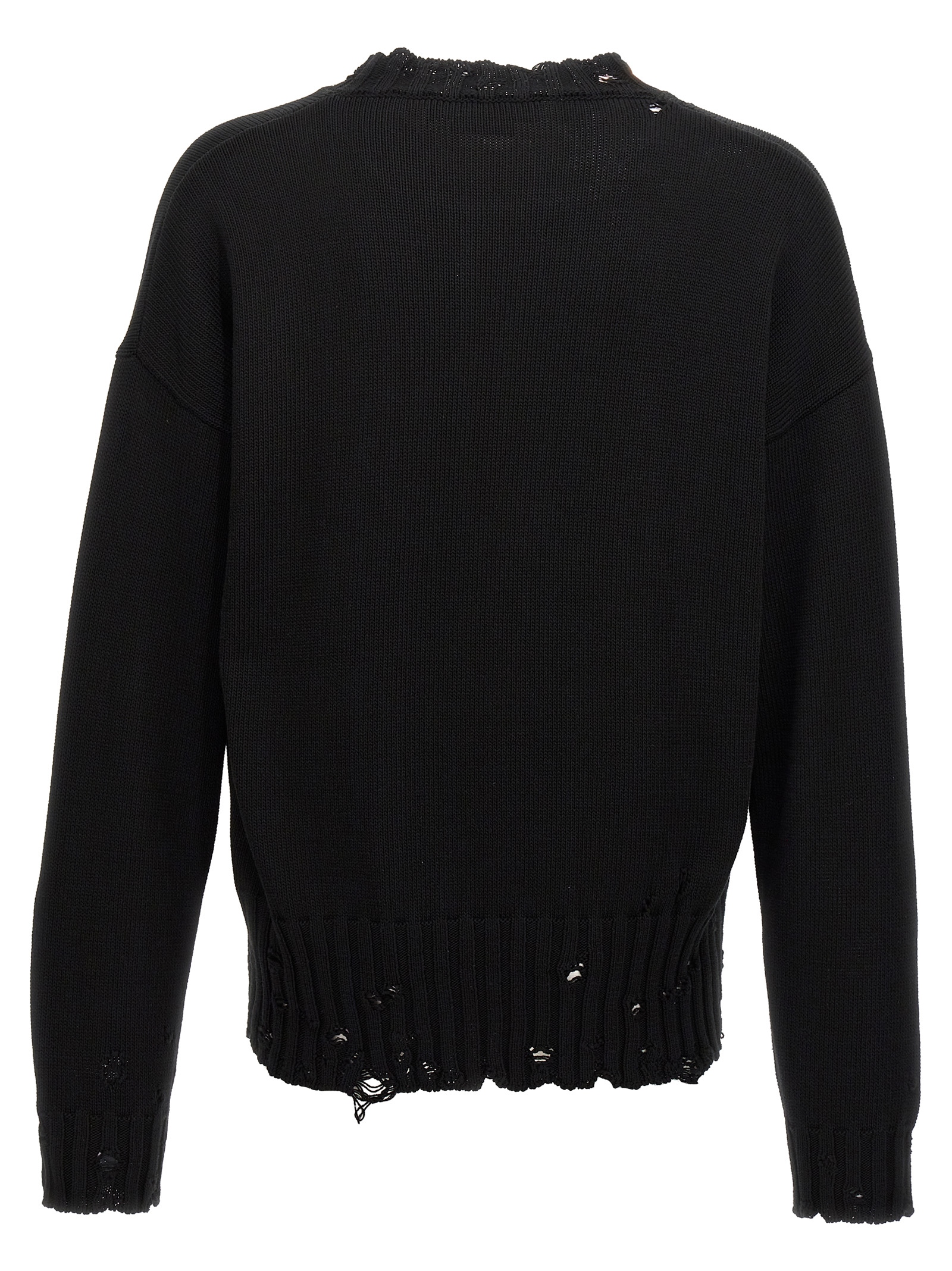 Destroyed effect cotton sweater with crew neck with logo embroidery and long cuffed sleeves.