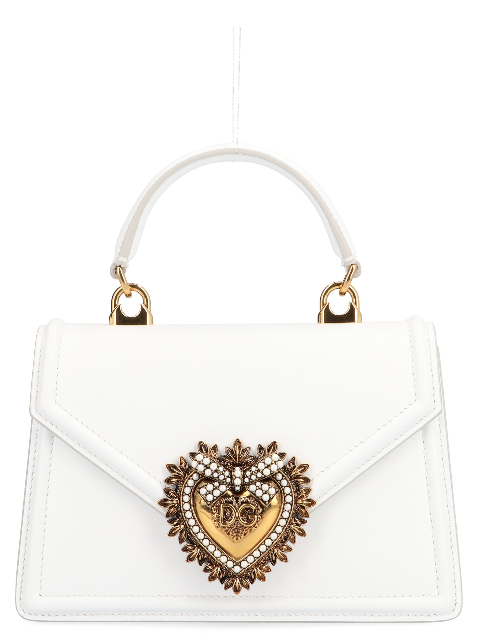 White Leather Sacred Heart Pearls Removable shoulder Strap