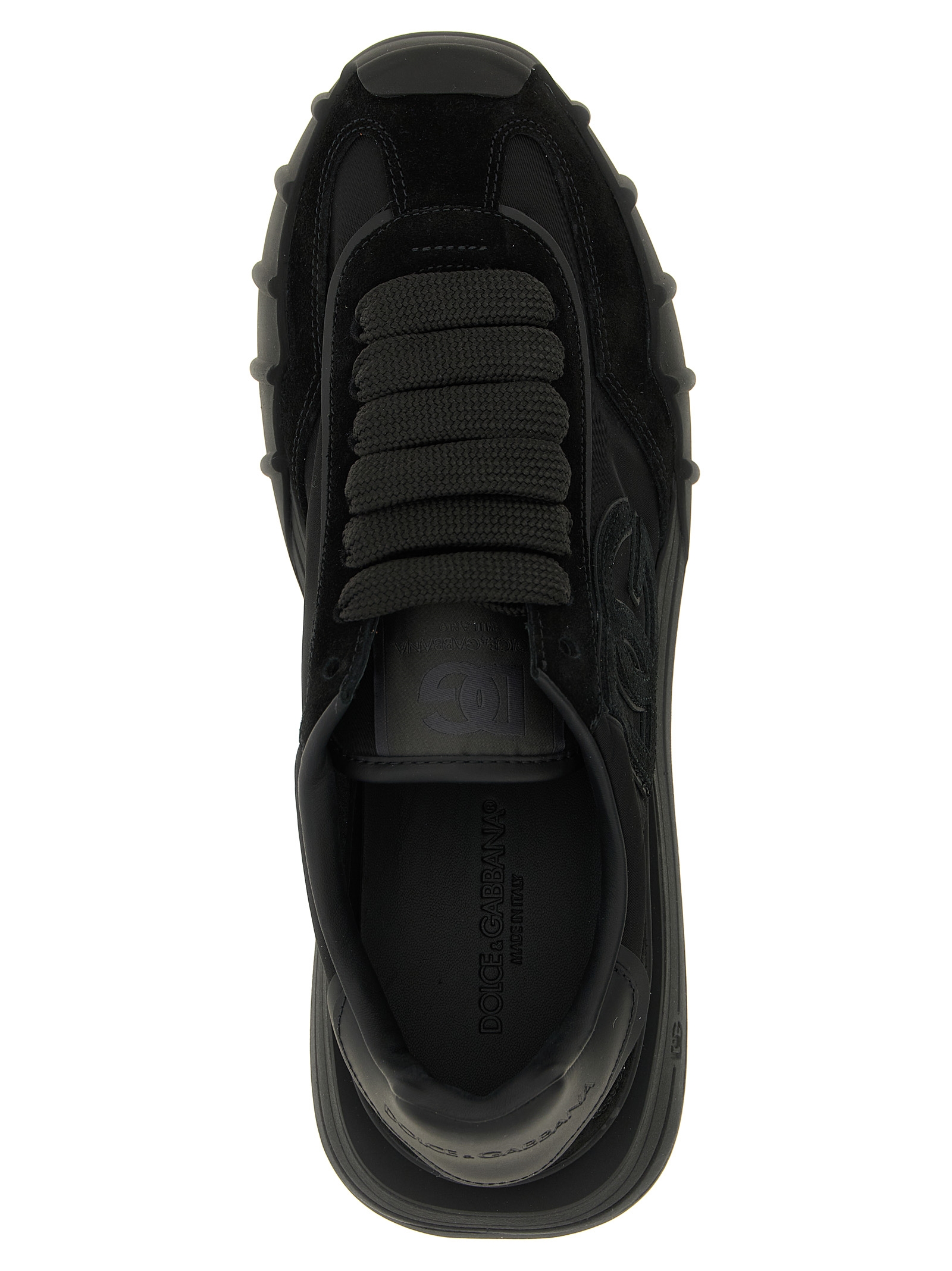 ‘DG Athletic’ sneakers in suede, canvas and smooth leather, side logo, embossed logo on the heel, lace-up closure, felt insole, thermoformed leather wrapped foam fussbett insole, rubber, Phylon and TPU sole.