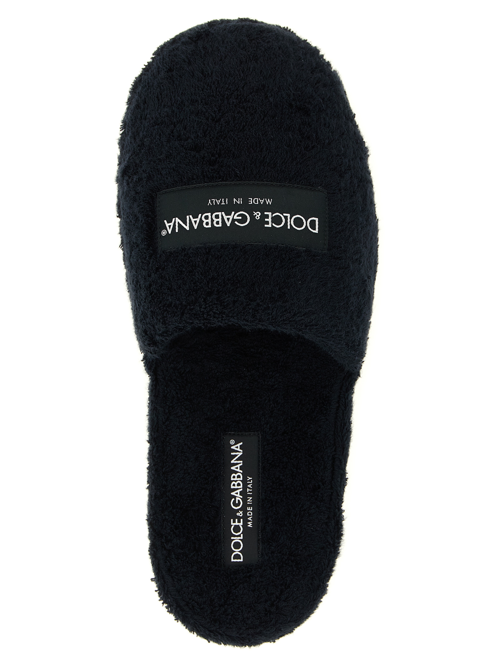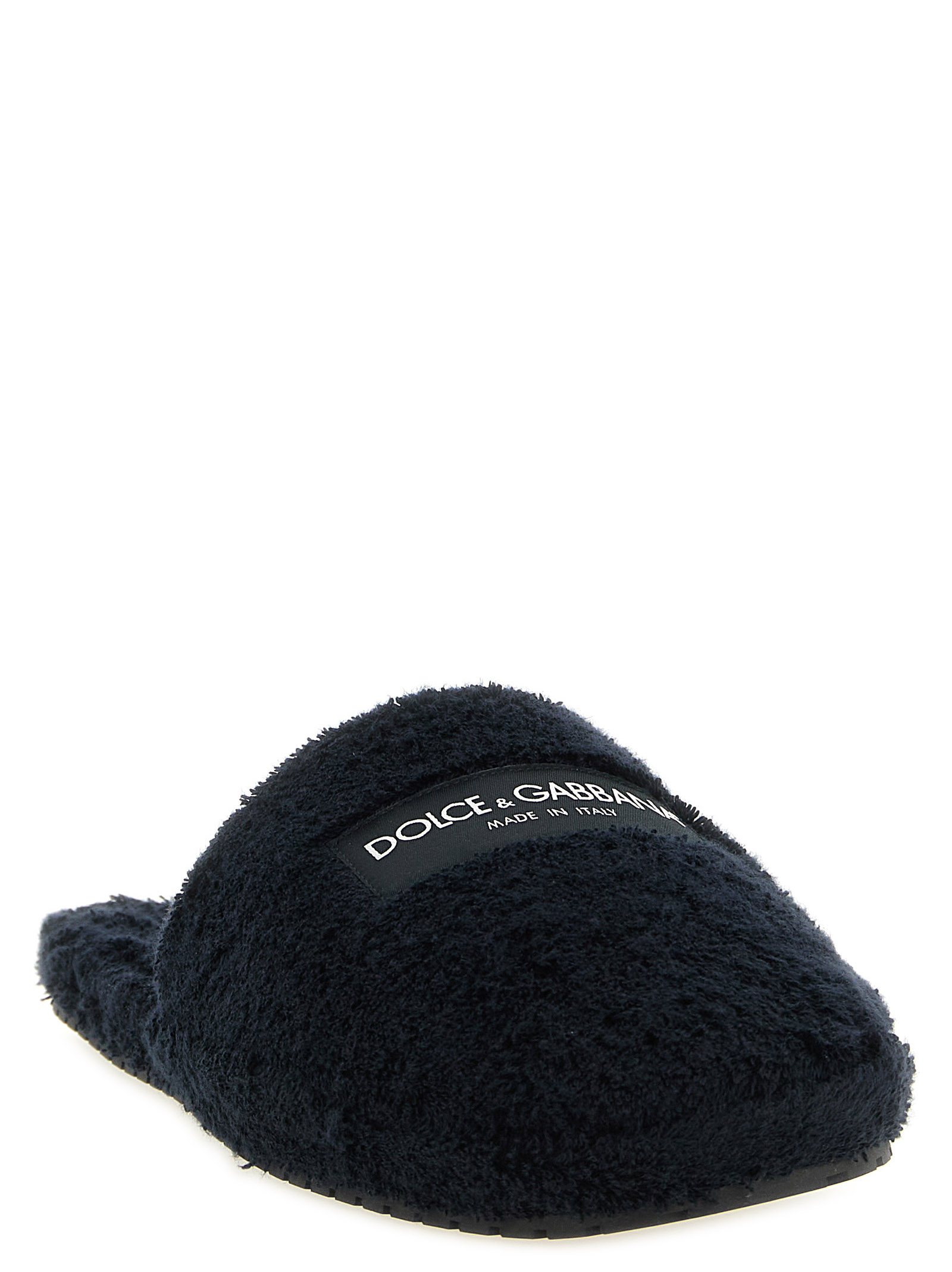 ‘DG Hotel’ terry slippers, front logo patch, micro insole, TPU sole.