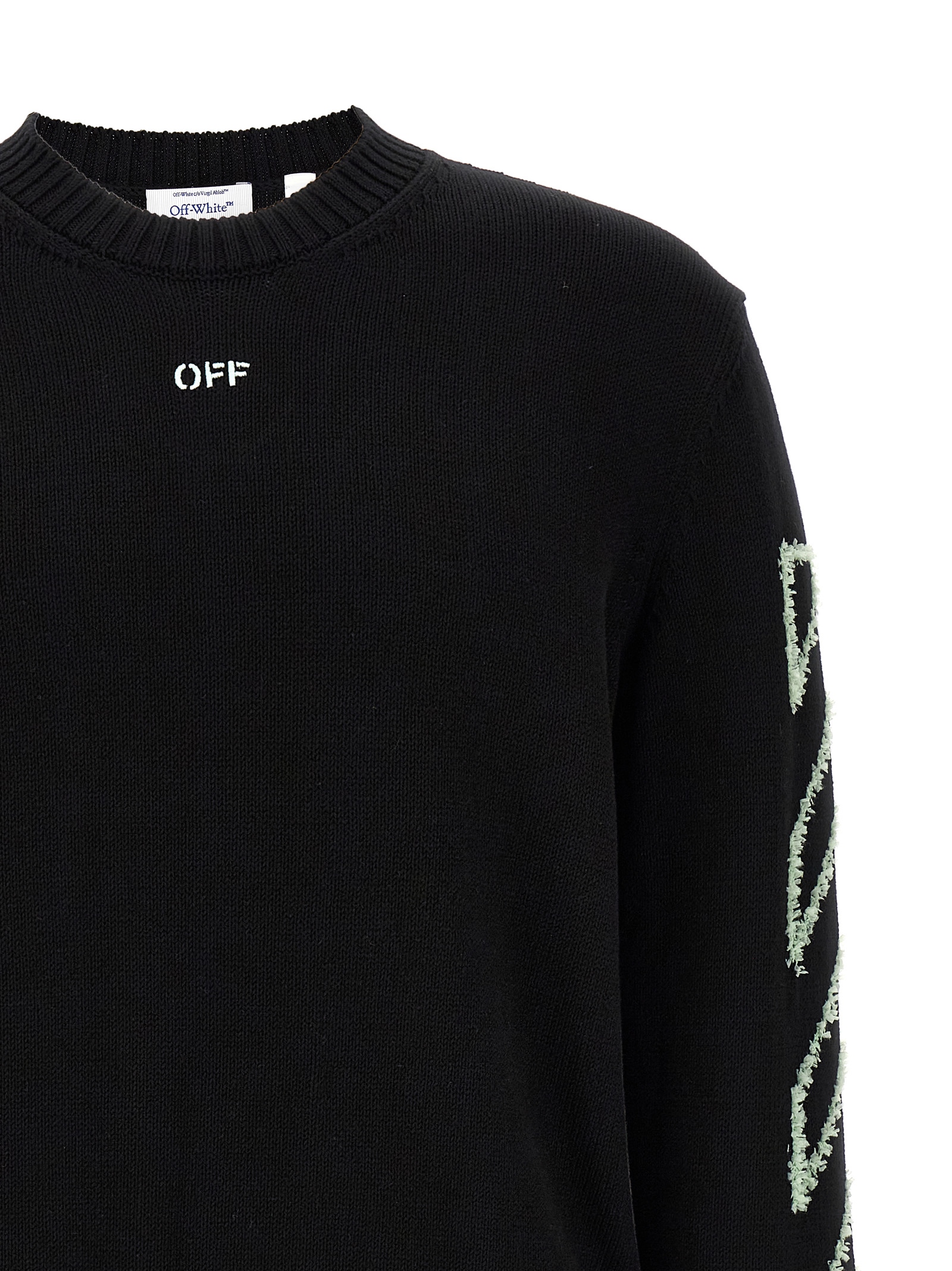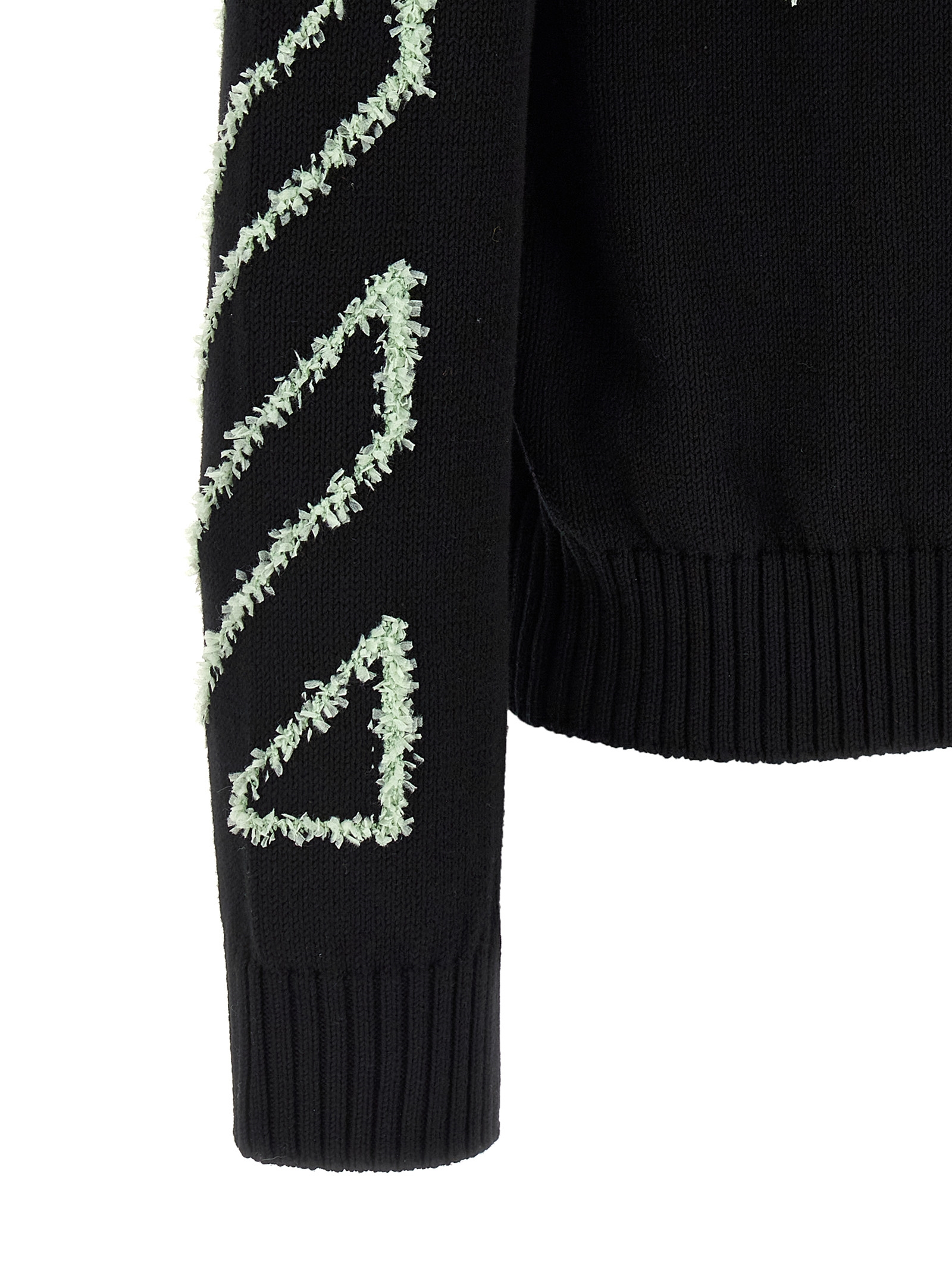 Knitted cotton sweater with 3D ‘Diag Outline’ inlays, front logo embroidery, crew neck, long cuffed sleeves and dropped shoulders.