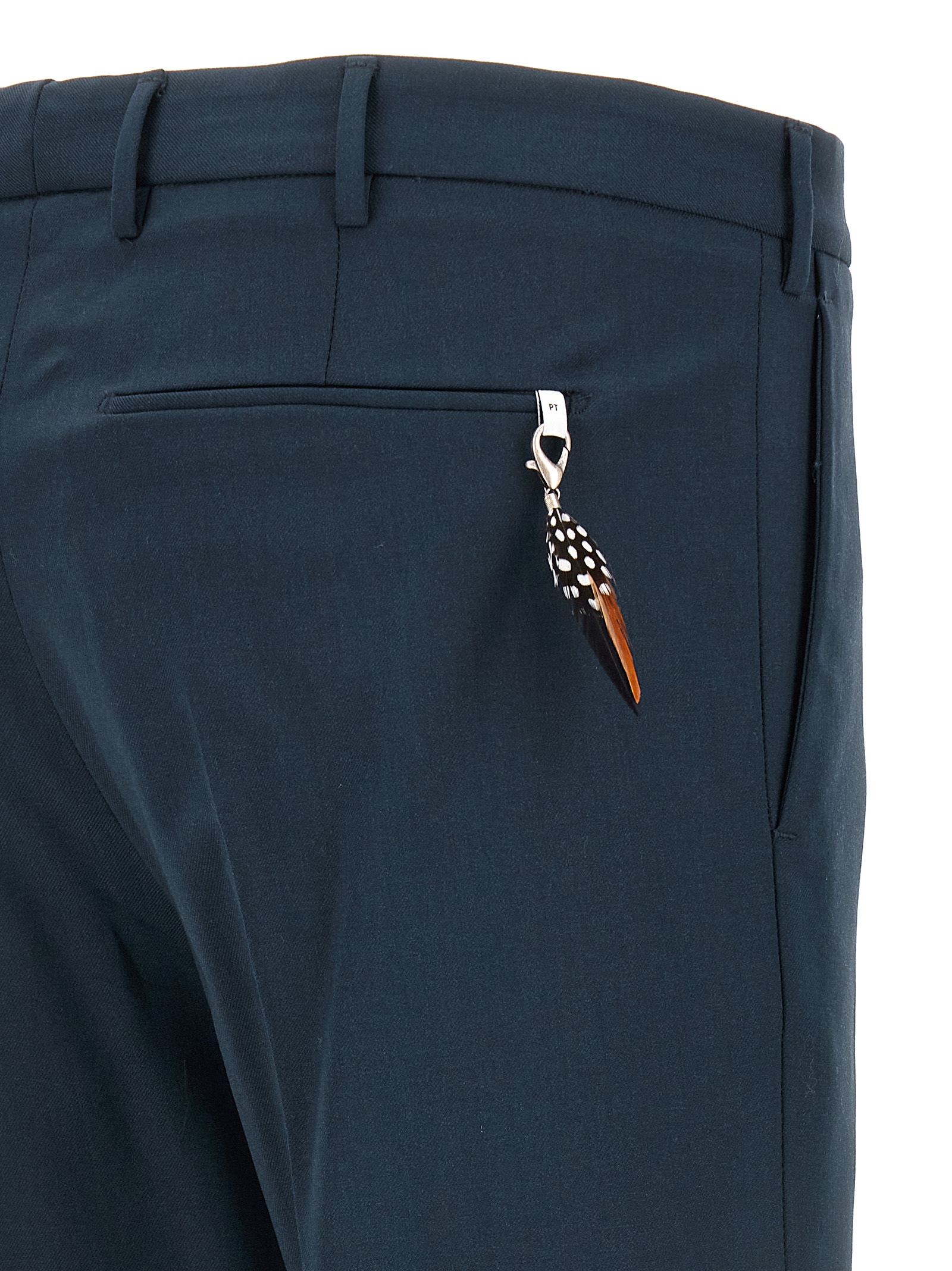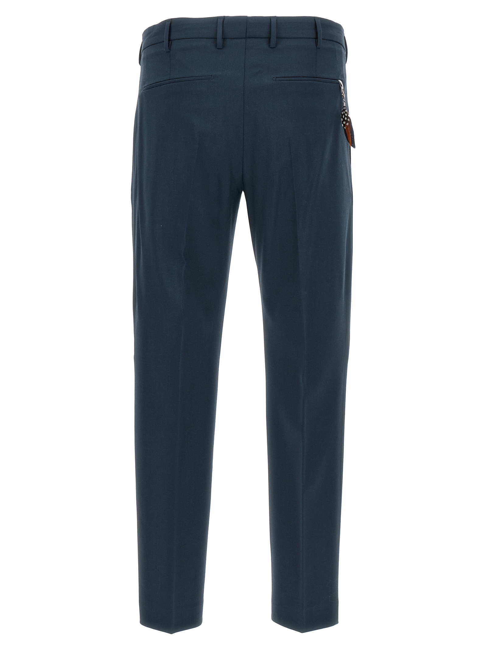 ‘Dieci’ pants in stretch wool 350gr, zip hook and button closure, pockets, leg with central pleat.
