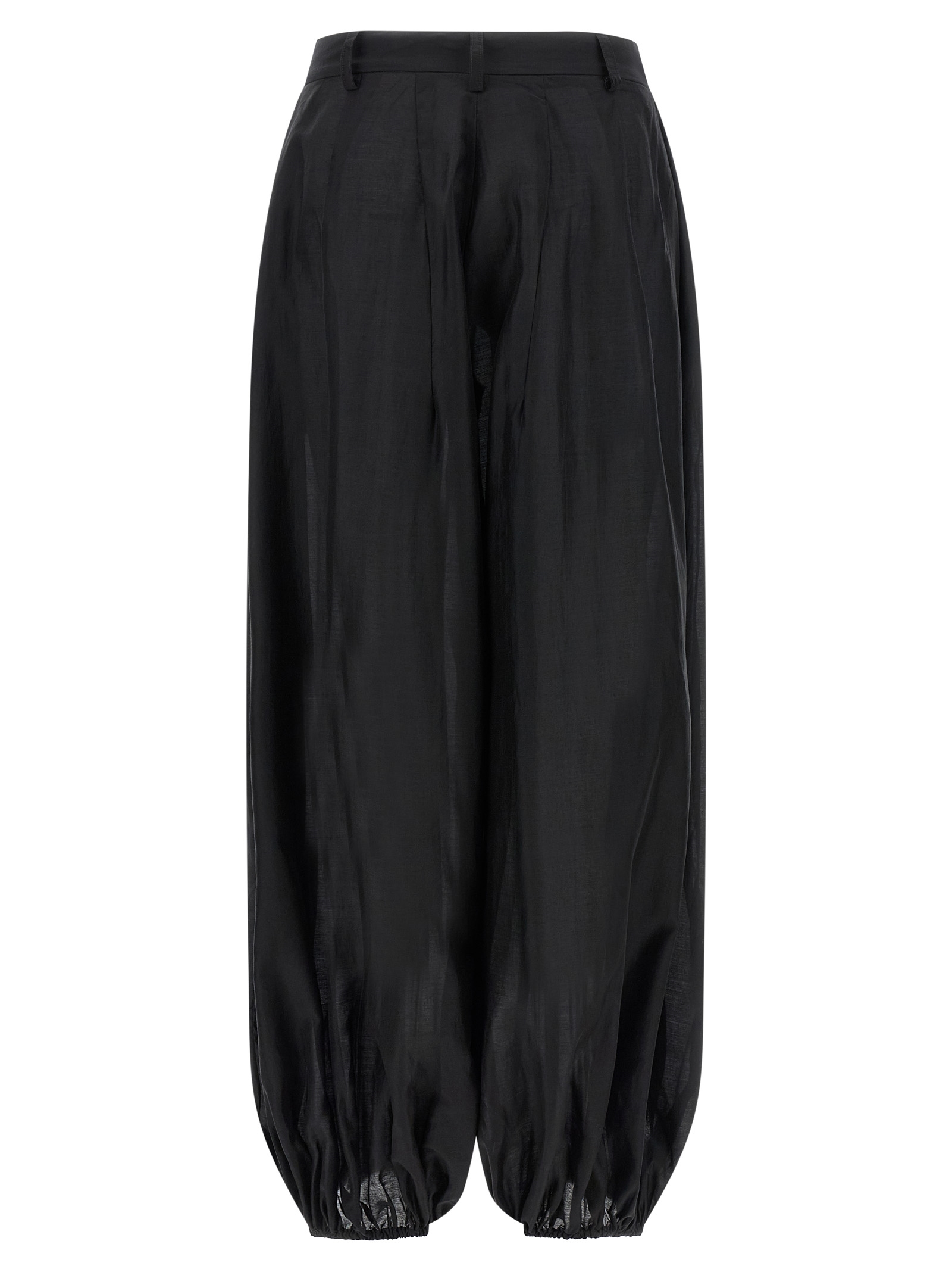 ‘Dilan’ light muslin pants, wide waist, belt loops, front zip and hook closure, front pin tucks, side pockets, wide leg with elastic hem.