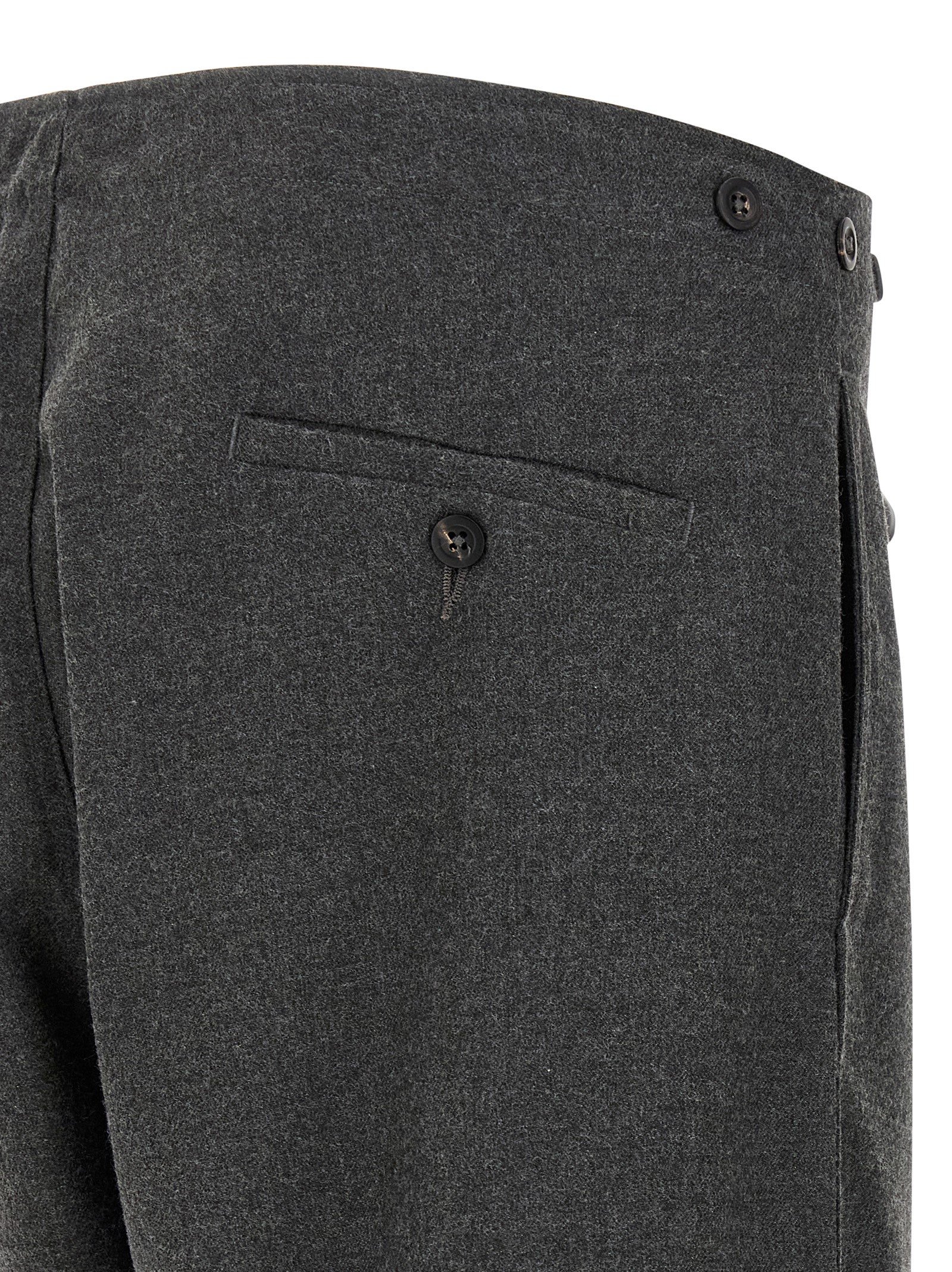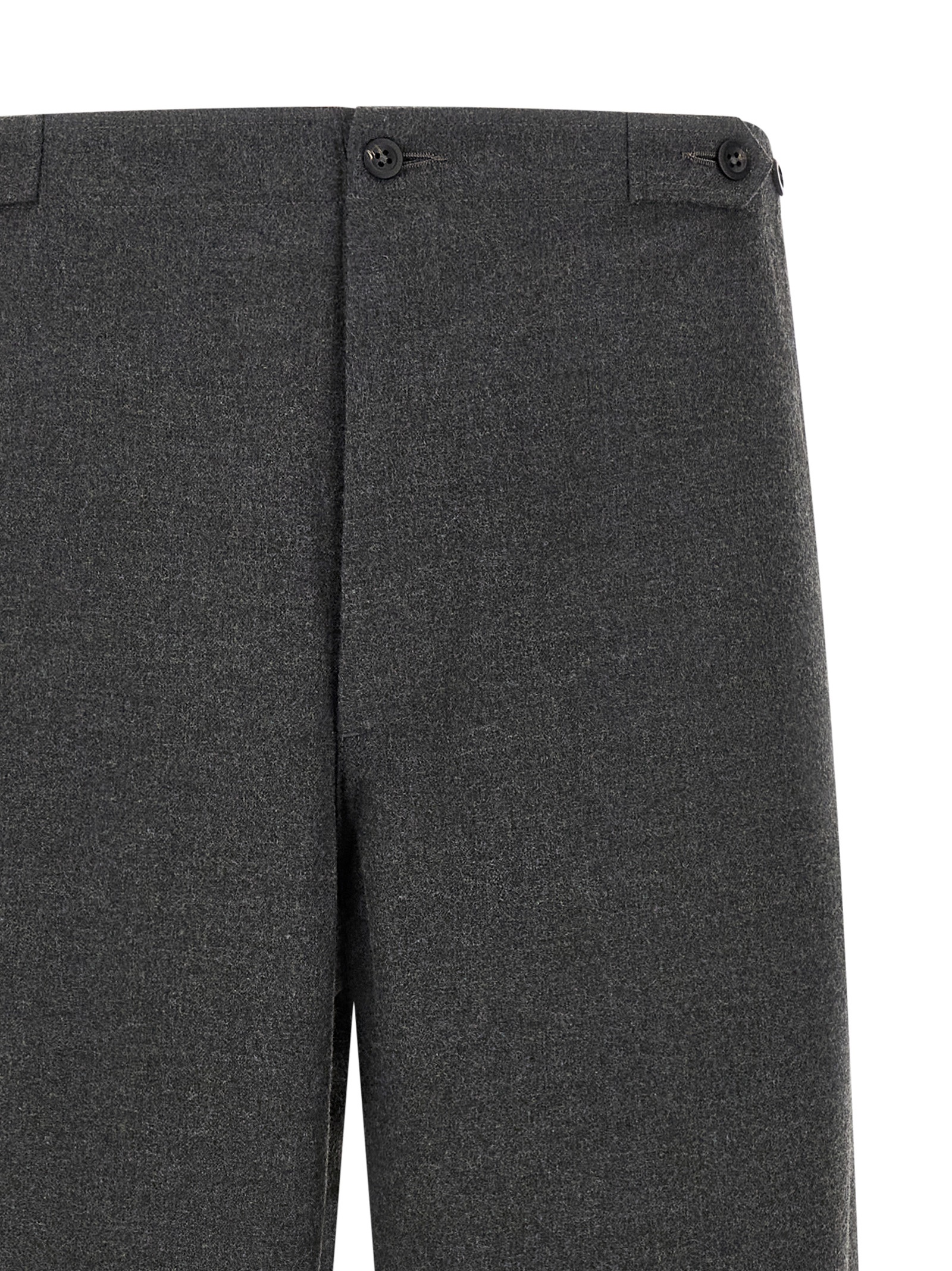 ‘Dino’ civilian supply wool trousers, straight leg, high waist with button closure, button detail at the waist to adjust the width.