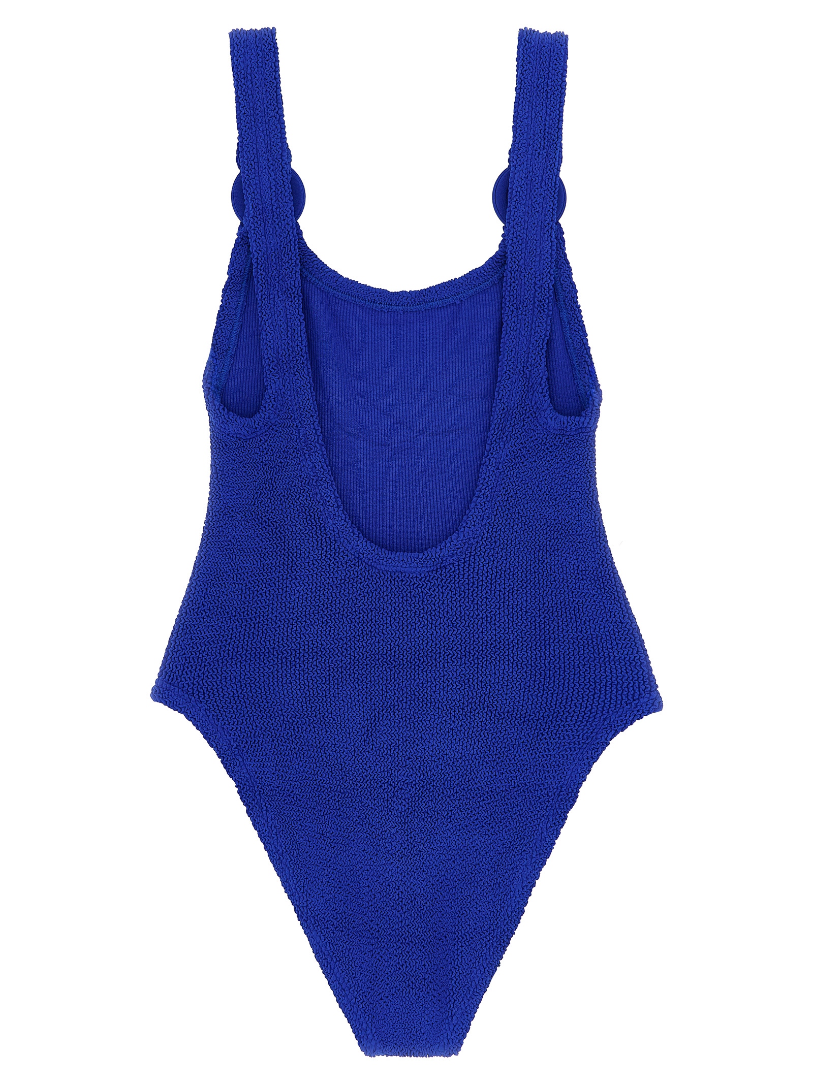 The Original Crinkle™ fabric ‘Domino Swim’ one-piece swimsuit with wide round neckline at the back and front V-neck, cut-out tone-on-tone rim detail on shoulder straps, medium breast support, classic hem coverage.