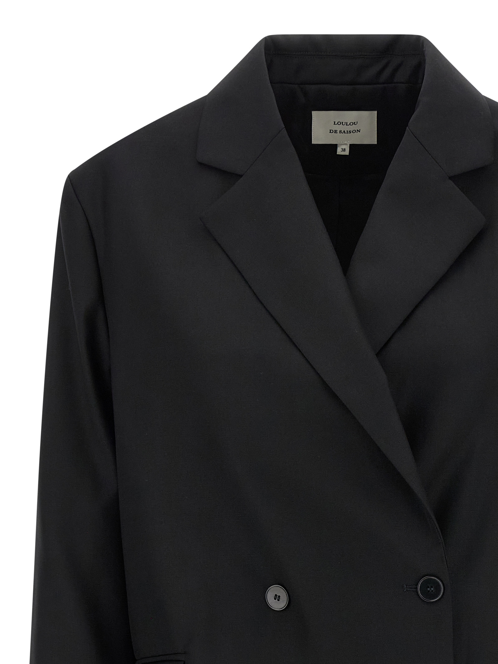 ‘Donau’ double-breasted wool blazer with button closure, back central split, long sleeves with buttons.