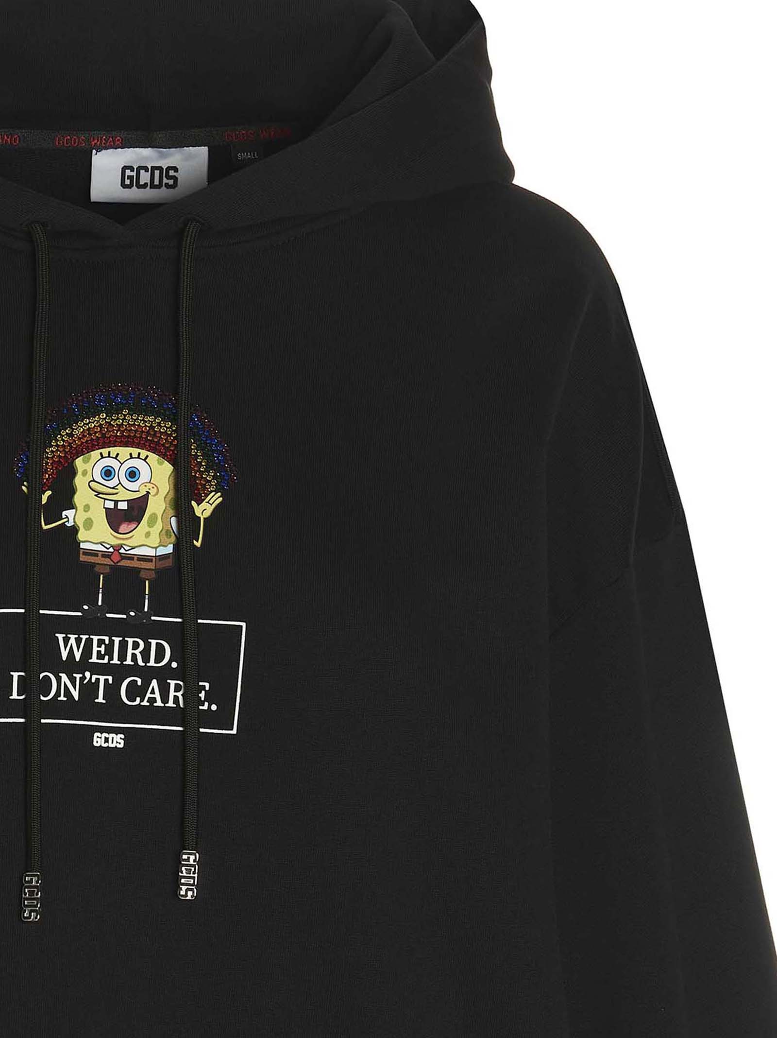 ‘Don’t care’ gauze cotton capsule hoodie with front print embellished with sequins.