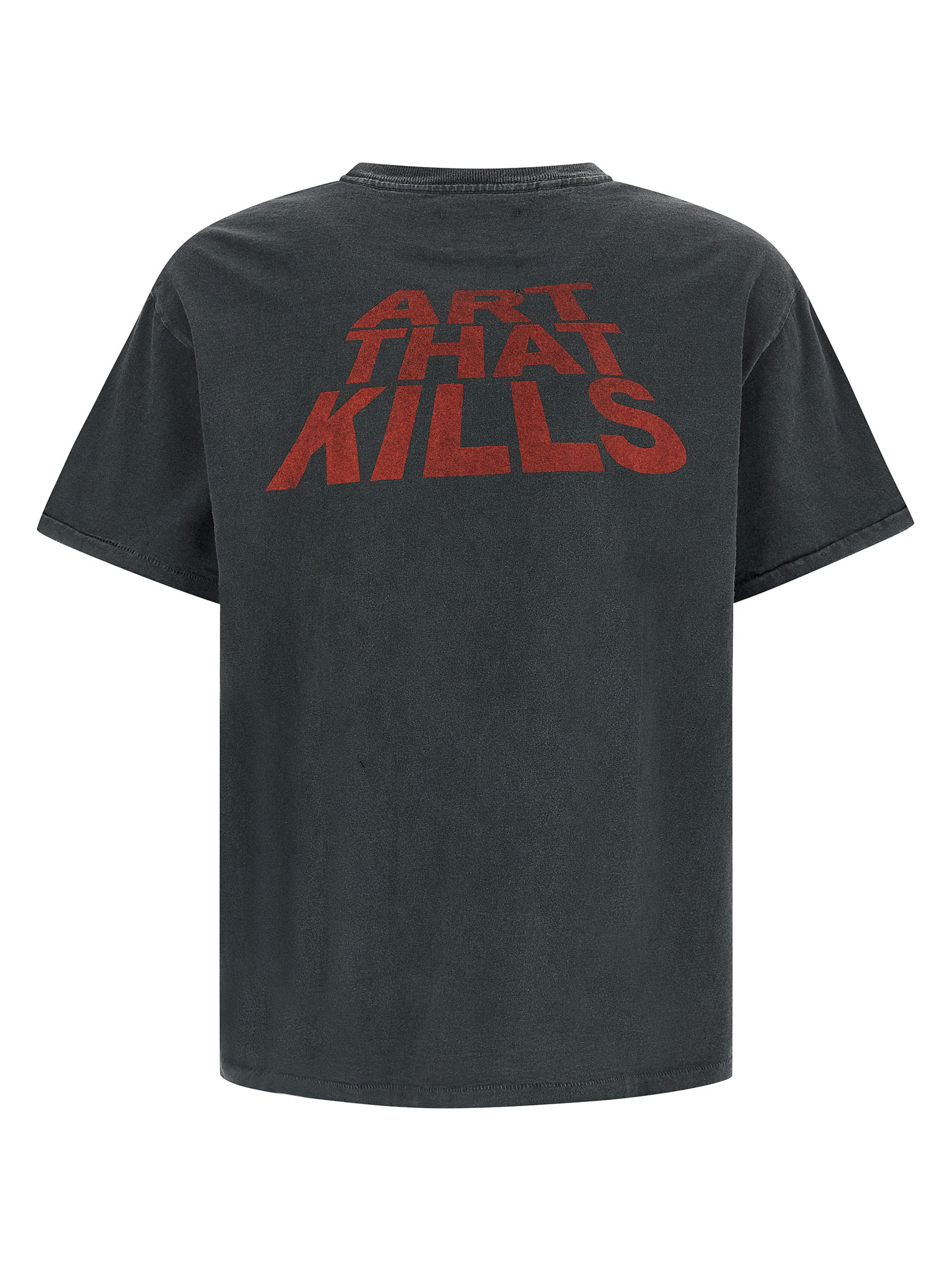 ‘Don’t Die’ used-effect delavé cotton T-shirt with front and back print, crew neck, short sleeves with dropped shoulders.