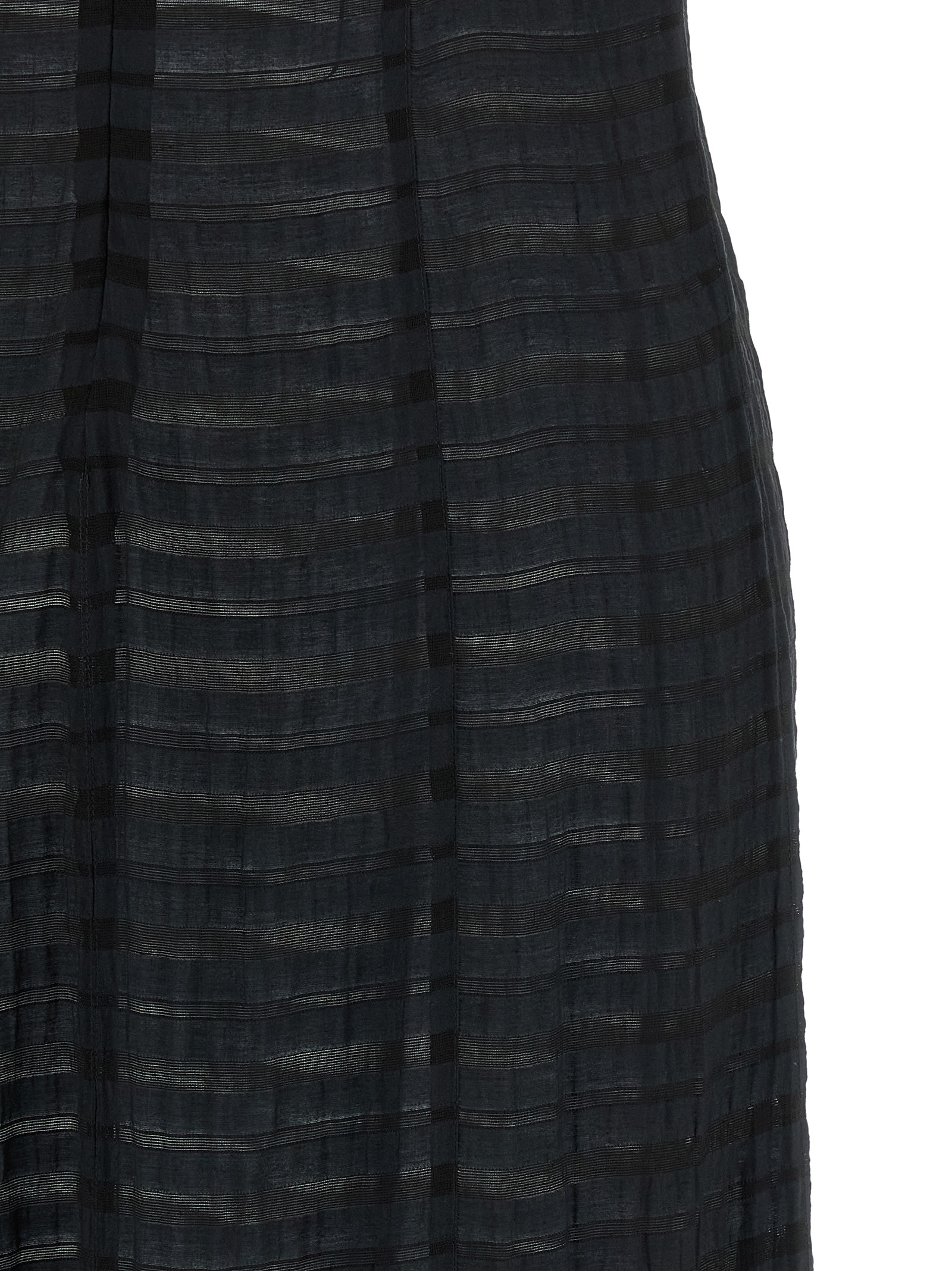 Long ‘Dori’ dress in light semi-transparent striped muslin, flared silhouette, crewneck, sleeveless, back zip closure.