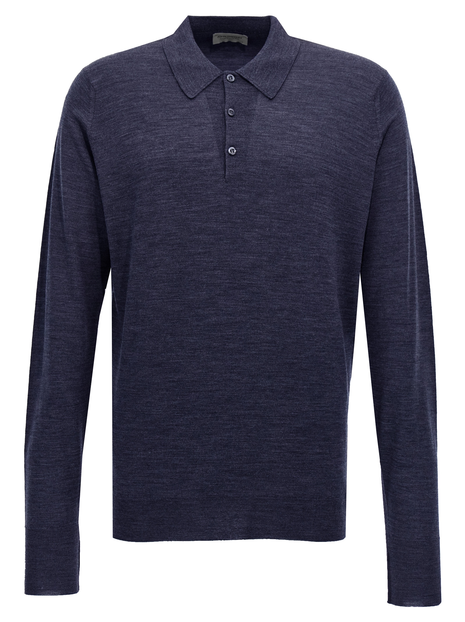 ‘Dorset’ wool polo shirt with long cuffed sleeves.