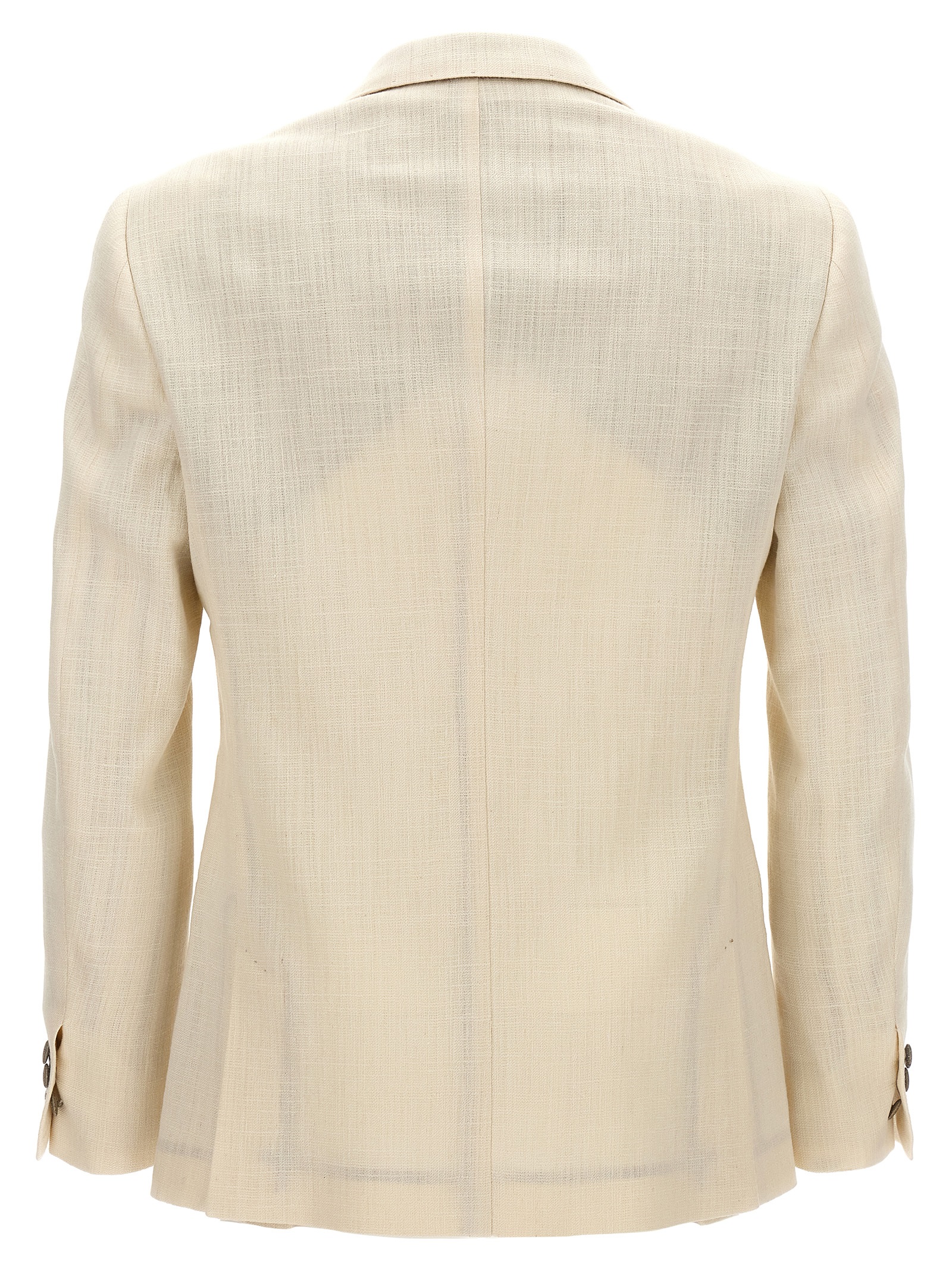 ‘Sam’ double-breasted blazer in silk blend with button closure, pockets, long sleeves, back vents.