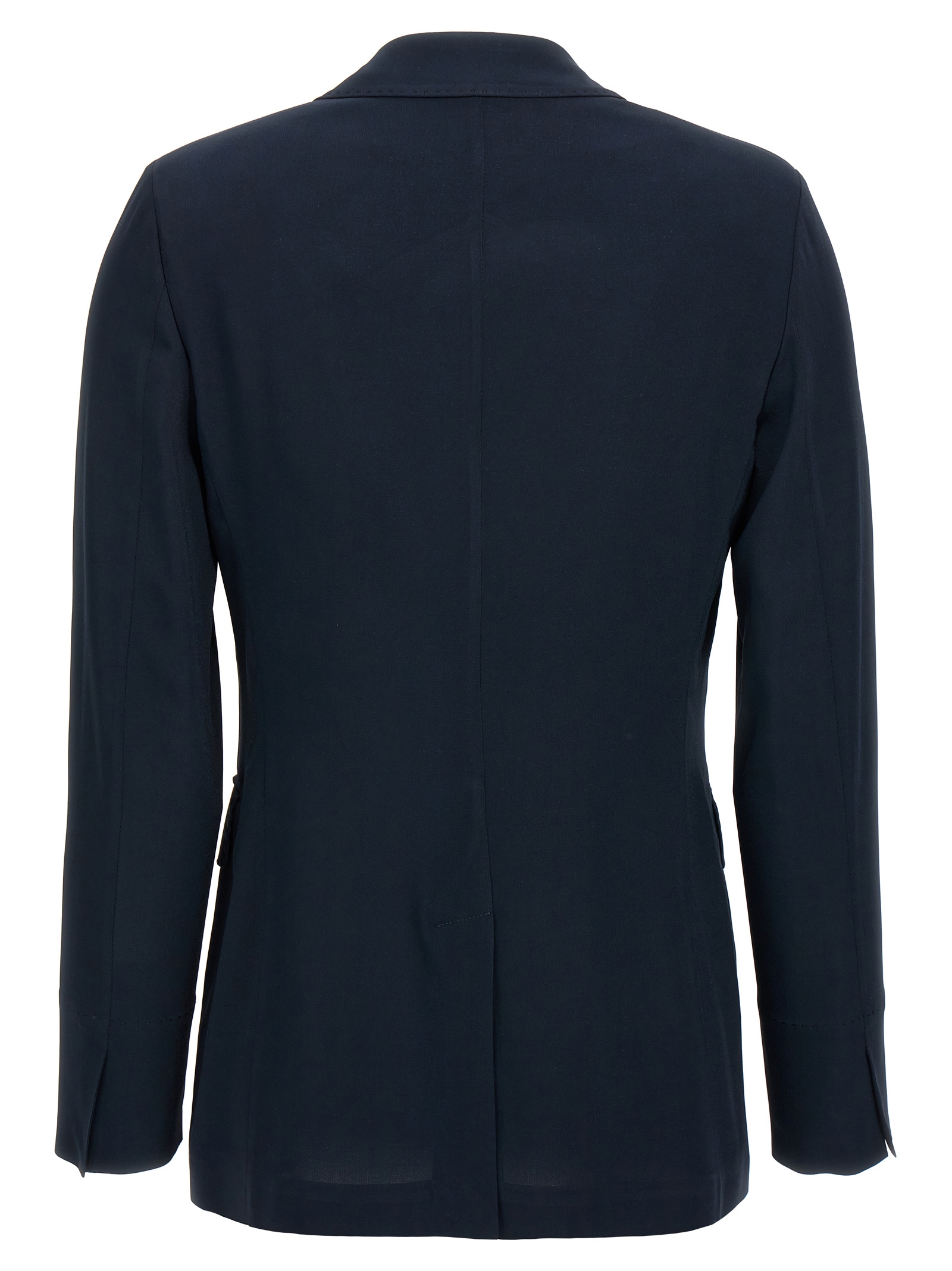 Viscose blazer jacket, double-breasted, unlined, single split at the back.