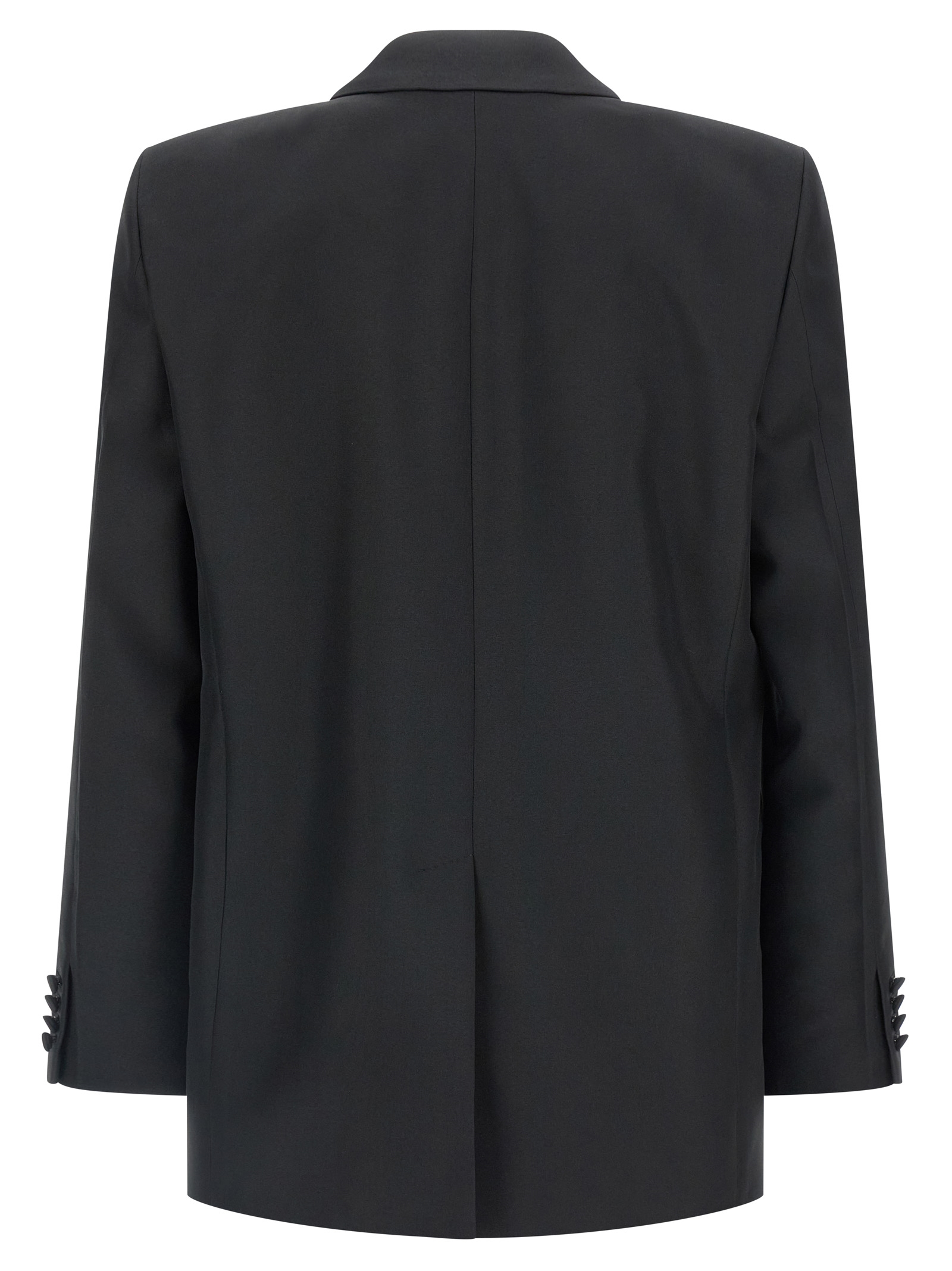 Double-breasted blazer in technical Panama with front button closure, peak lapels, breast pocket, flap pockets, padded shoulder, cuffs with opening buttonholes, back split, tone-on-tone GG viscose lining, and two inside pockets.