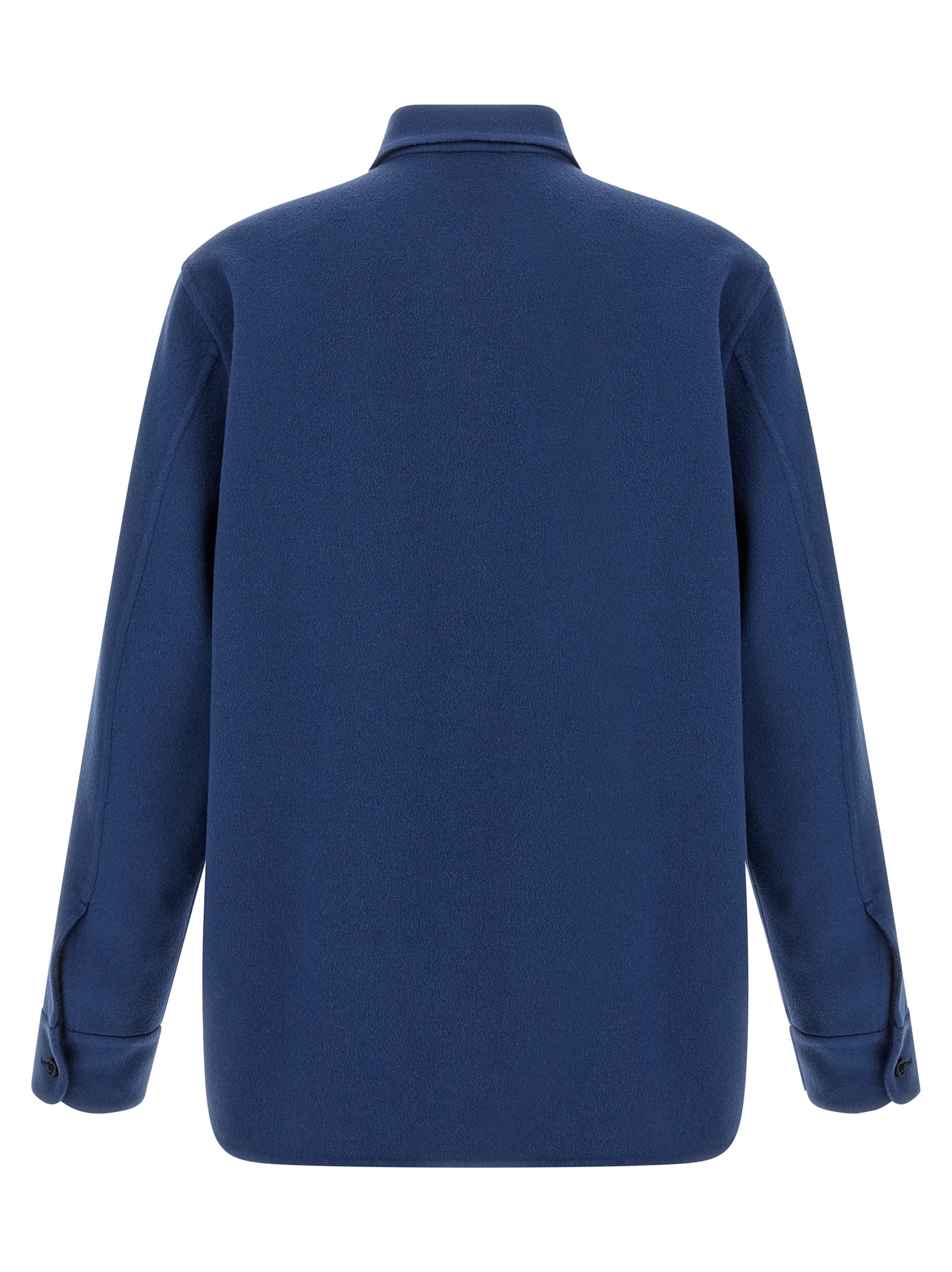 Overshirt in double wool and cashmere cloth, front zip closure, pockets, long sleeves with cuffs, unlined.