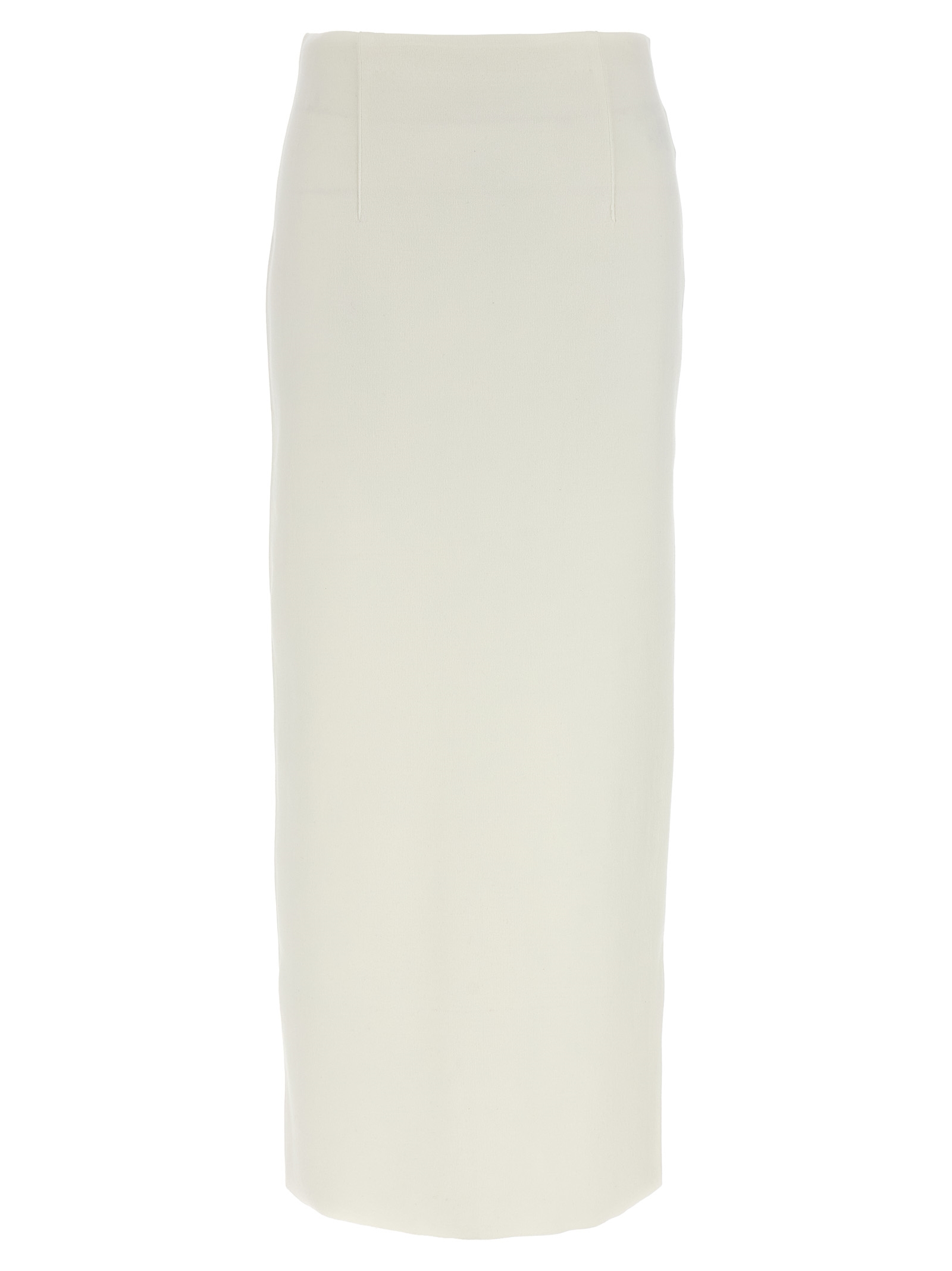 Long double-sided knitted skirt in yarn dyed with Supima cotton blend and silk with brushed finish and an elasticized yarn back, split and back zip closure.