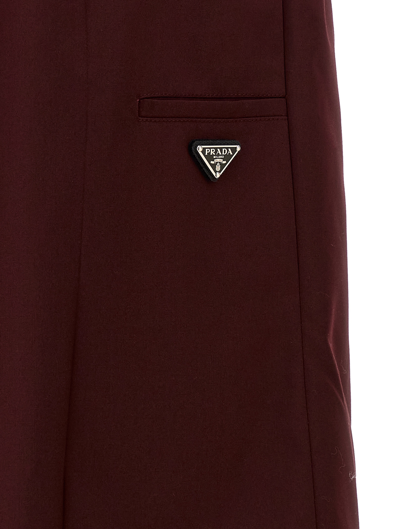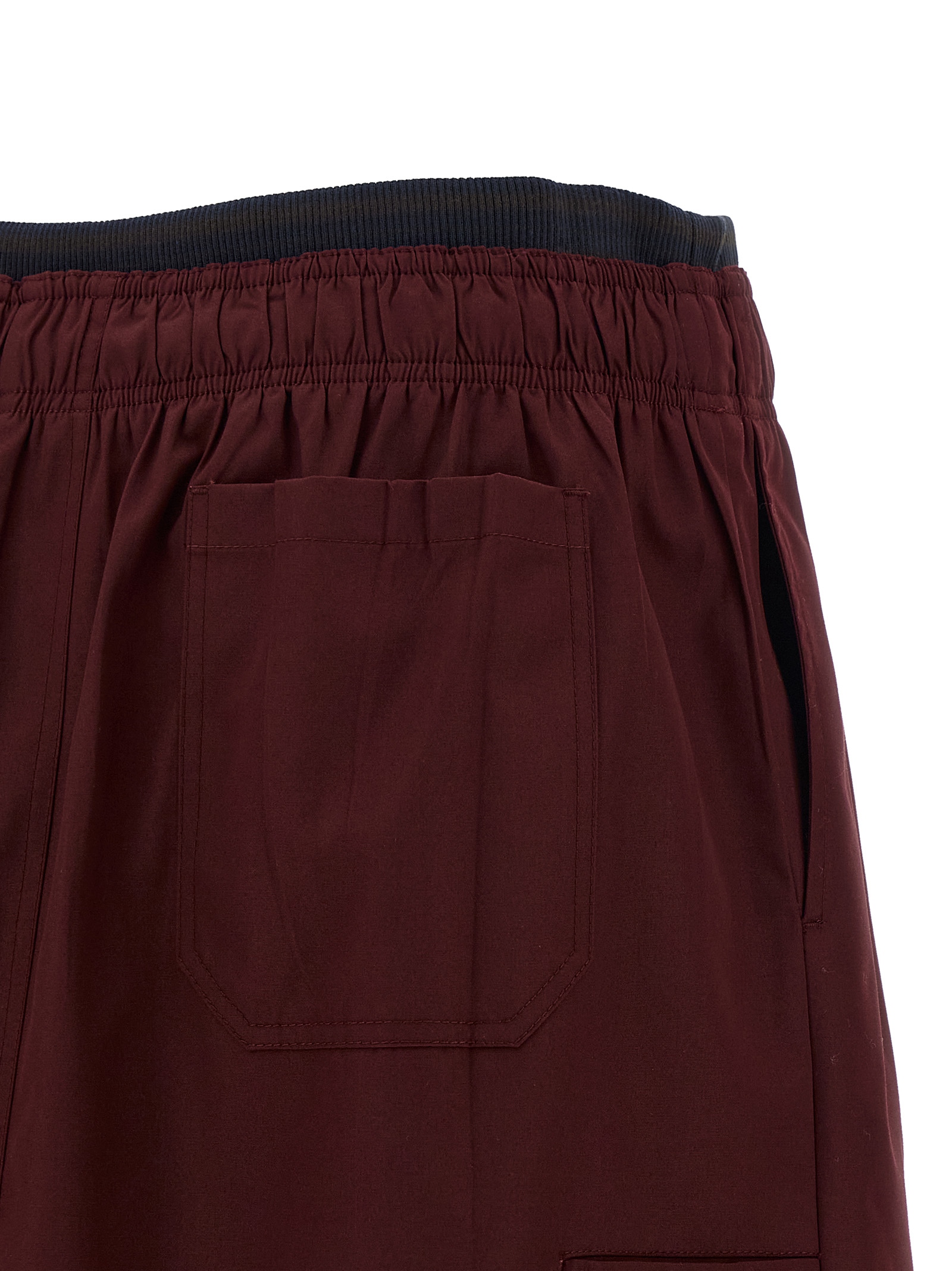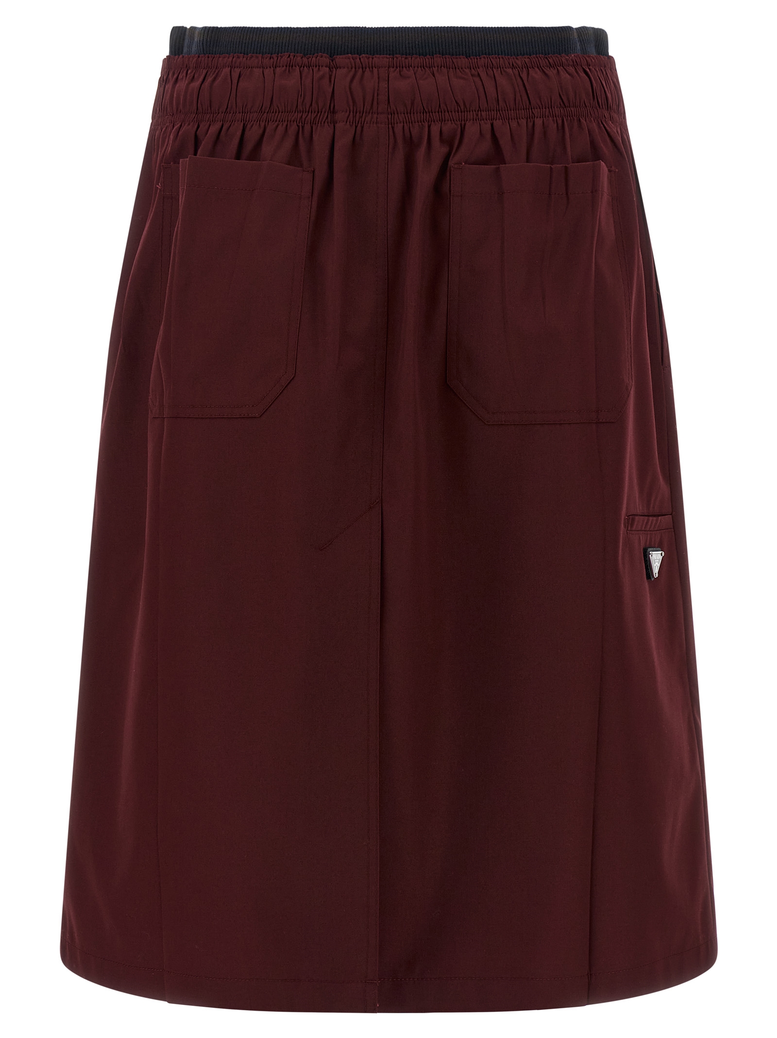 Midi skirt in poplin, double layer elastic insert at the waist – one with drawstring, the other in contrast ribbed stretch knit – flared silhouette, pockets, back split, unlined.