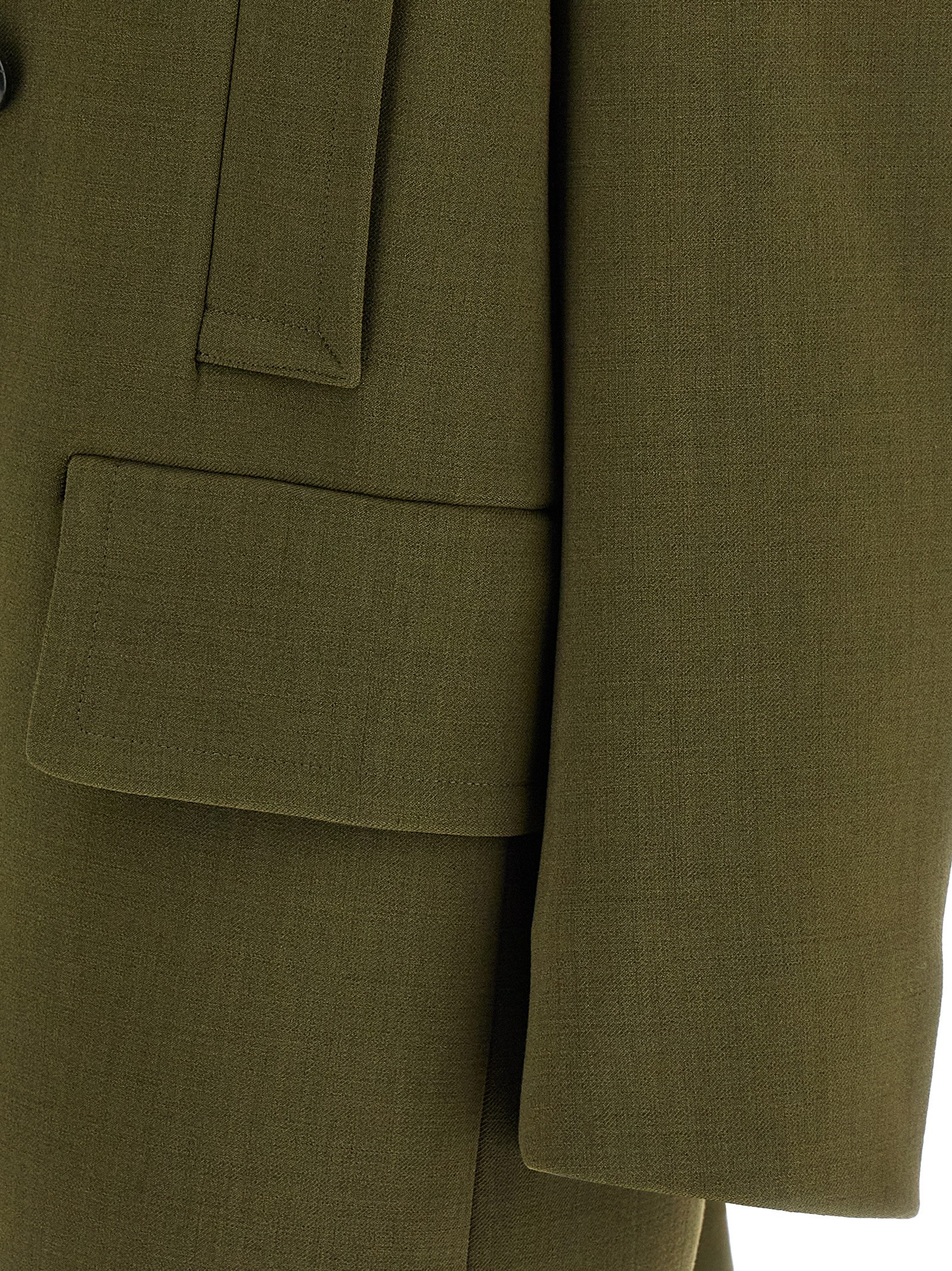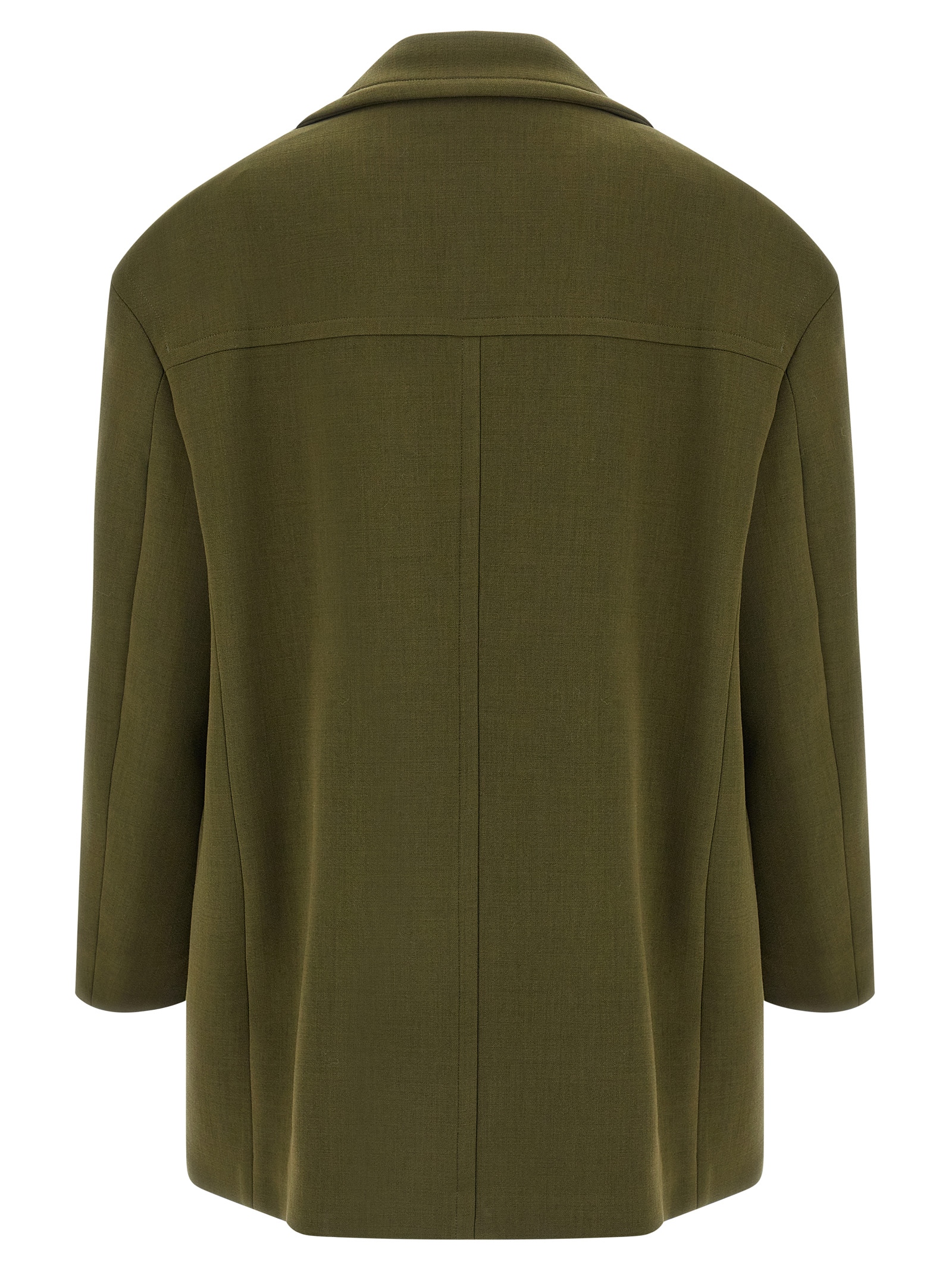 ‘Douglas’ double-breasted coat in spongy polycotton with front button closure, lapel collar with removable chin strap, pockets, slightly padded shoulders, long sleeves with dropped shoulders, lining.