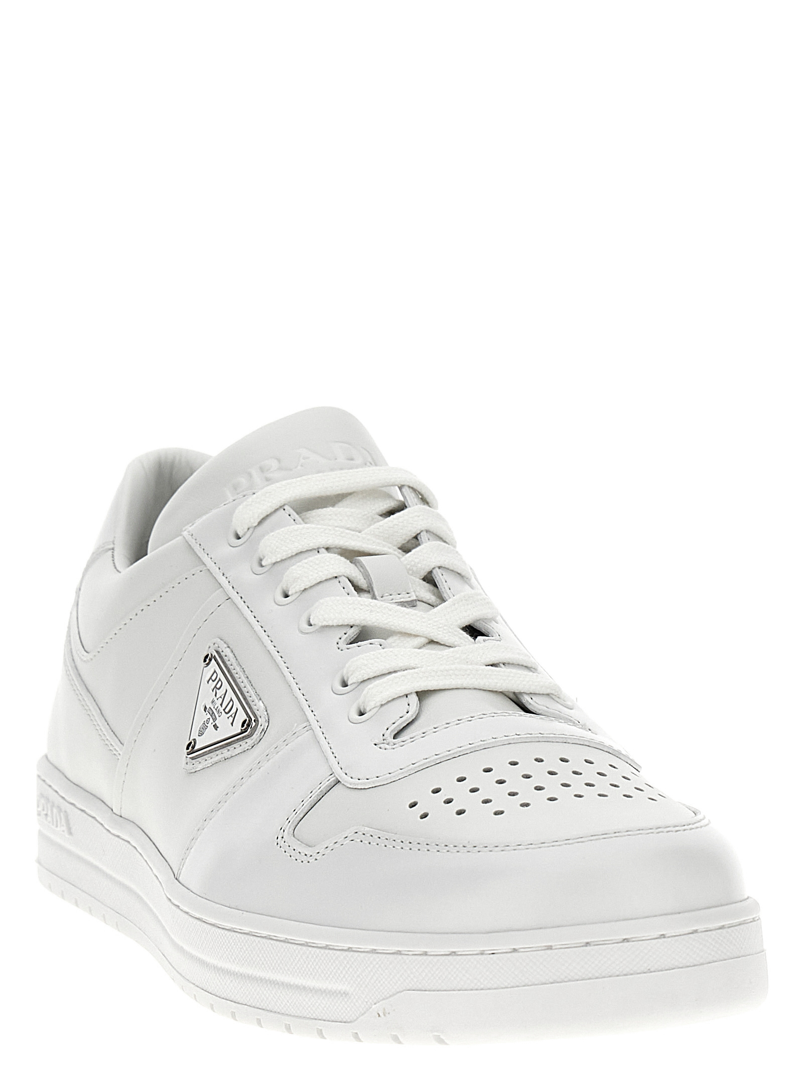 ‘Downtown’ leather sneakers with triangle enameled metal logo on the side, lace-up closure, rubber sole.