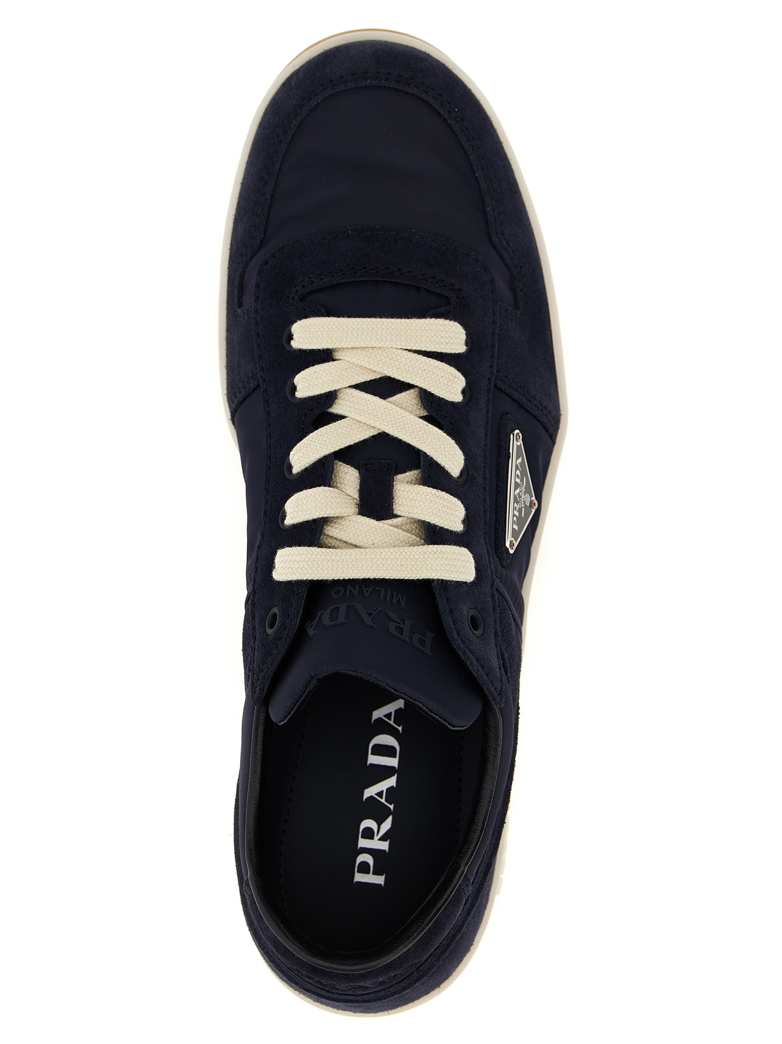 ‘Downtown’ sneakers in Re-Nylon and suede, triangle logo in enameled metal on the side, lace-up closure, rubber sole.