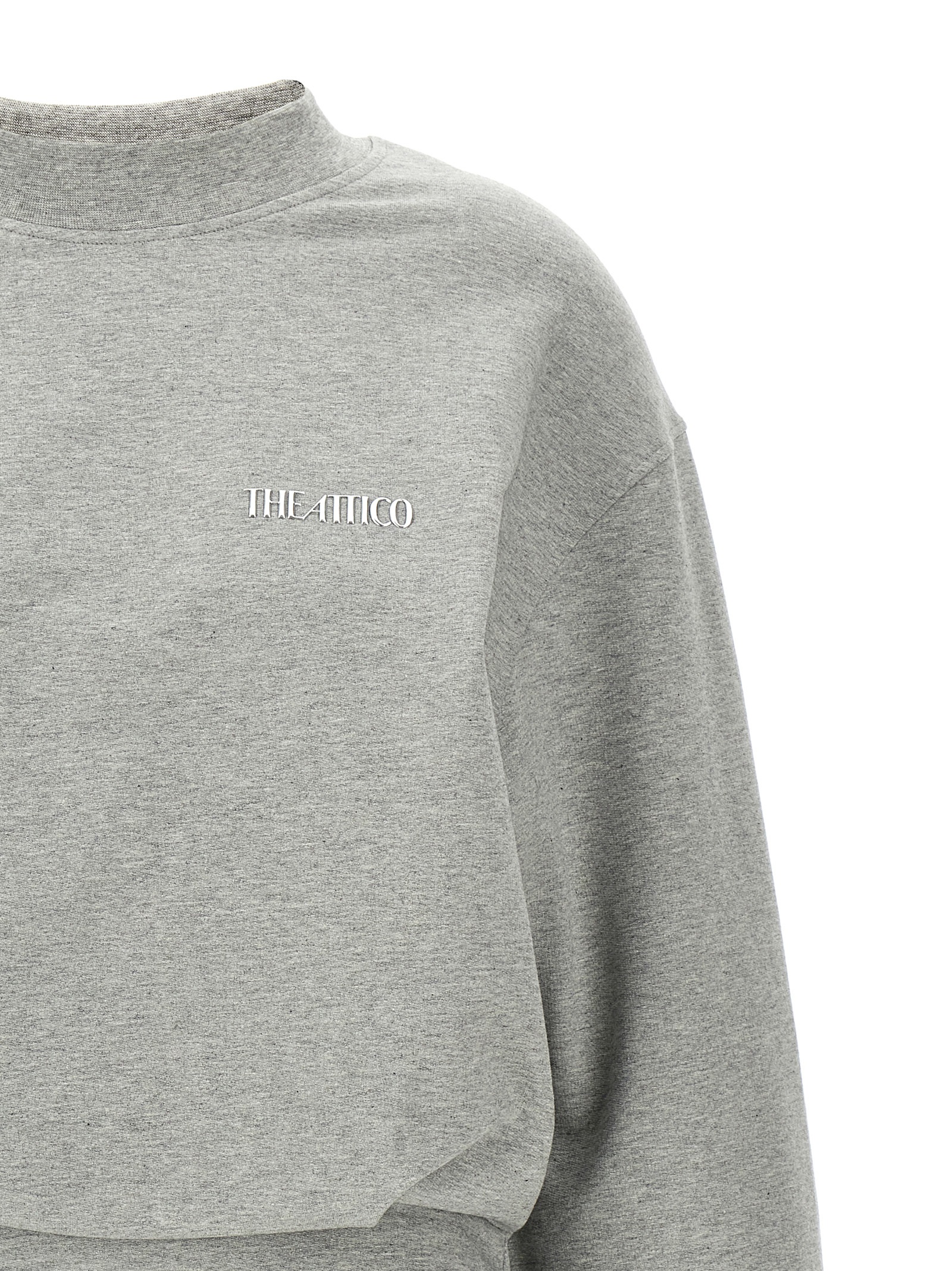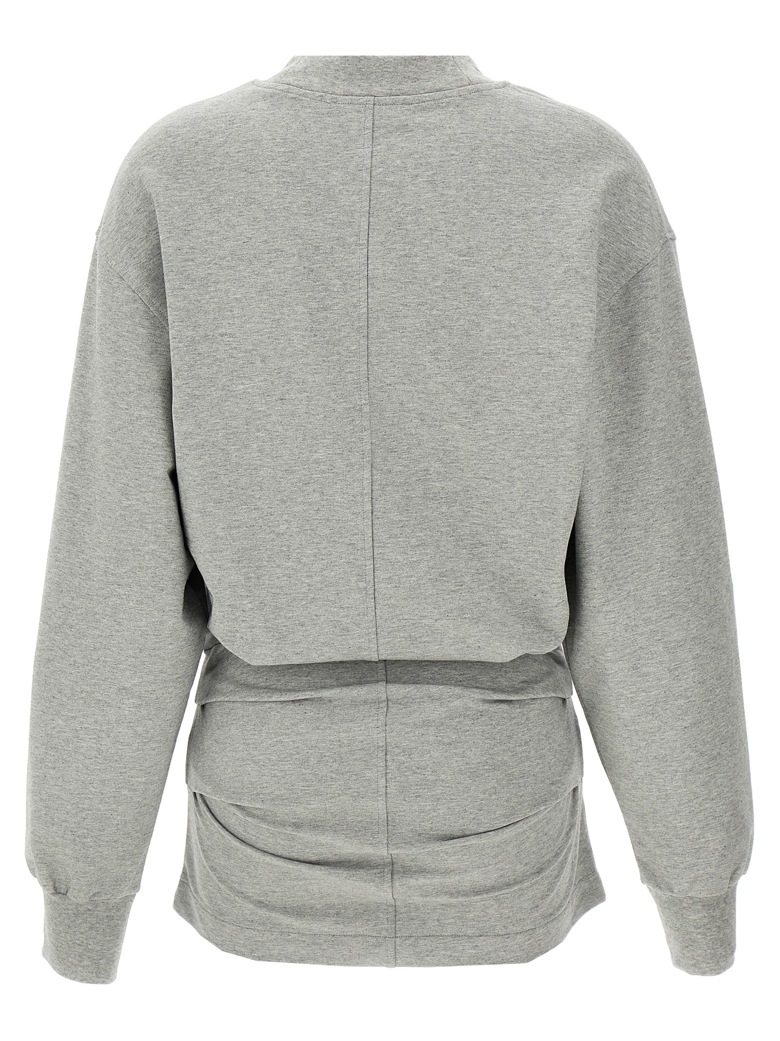 Brushed cotton dress, oversized sweatshirt and draped mini skirt, tone-on-tone metal logo on the front, crew neck, long sleeves with cuffs.