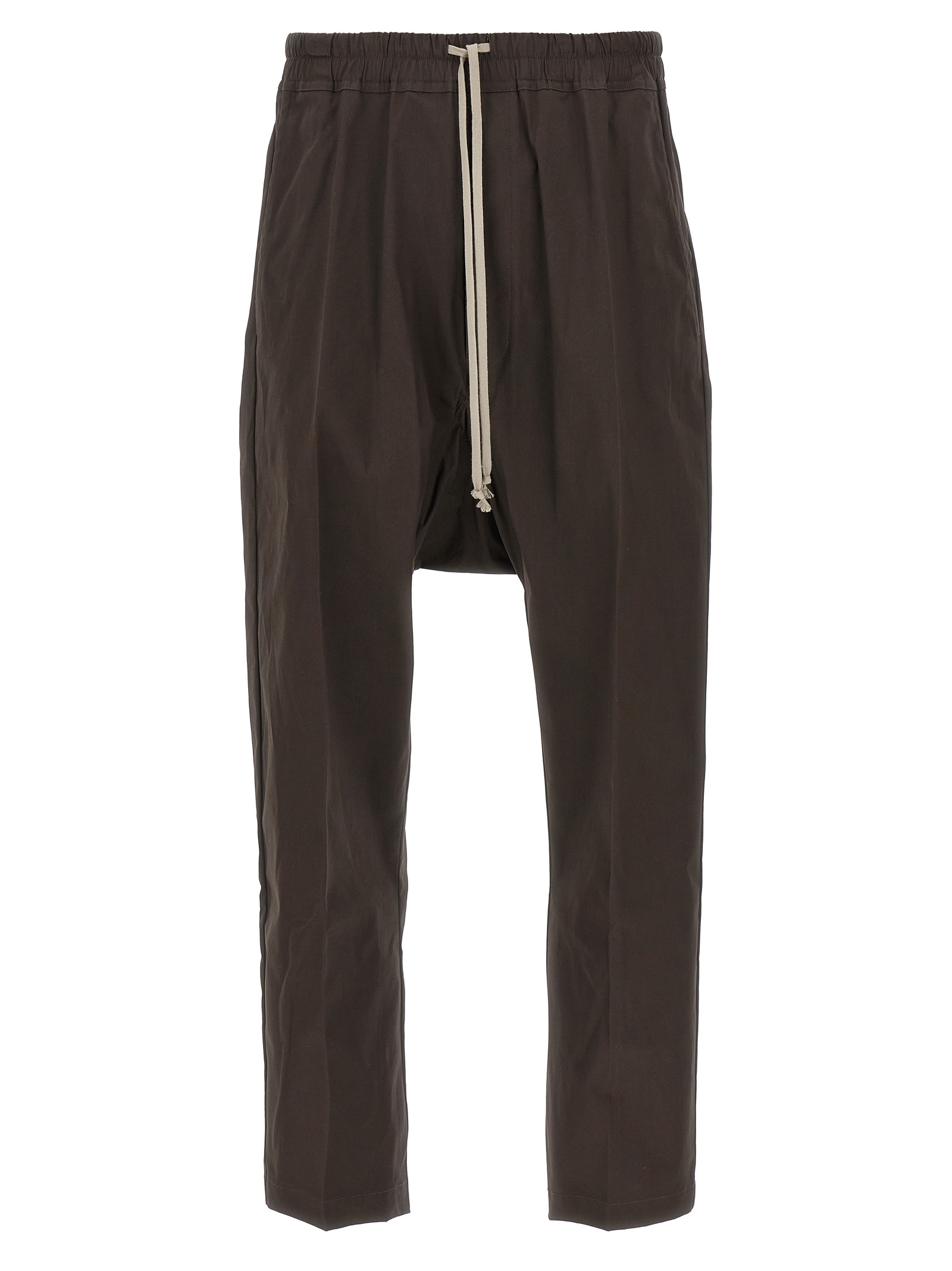 ‘Drawstring Long’ pants in cotton poplin with a crunchy average hand weight, low crotch, adjustable drawstring elastic at the waist, button flap, pockets.