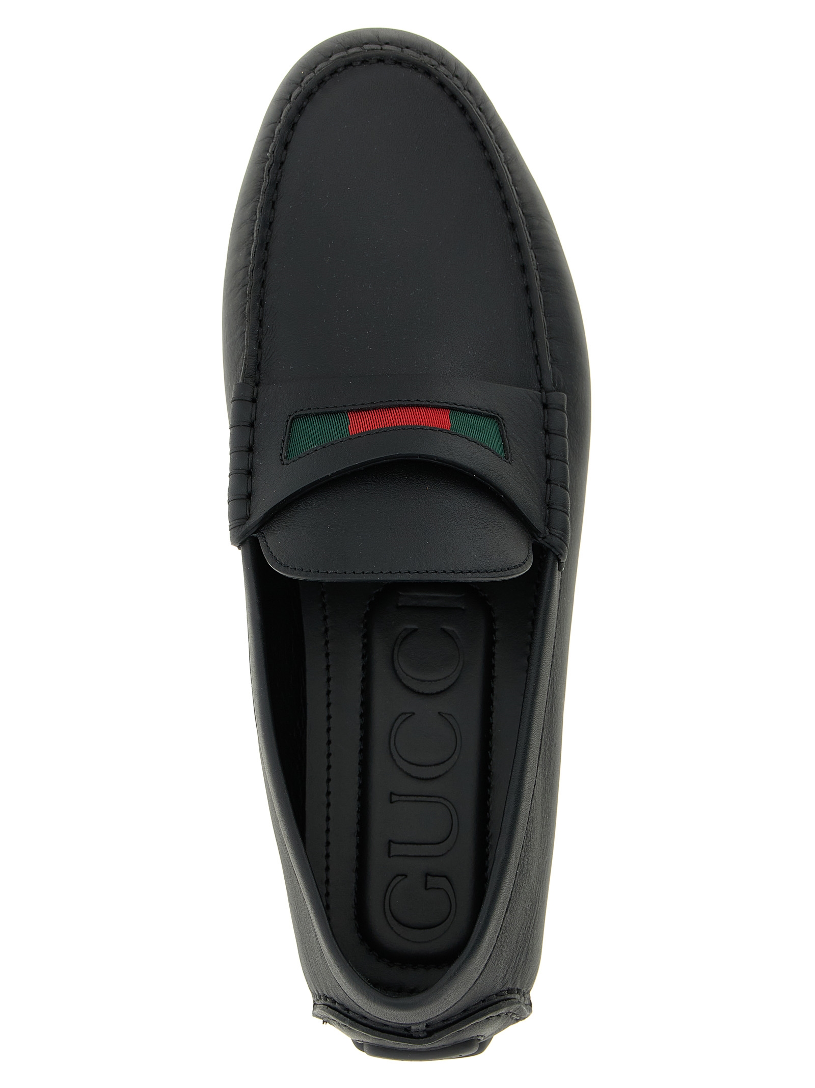 Leather loafers, driver model, front grosgrain ‘Nastro Web’ detail, padded insole, rubber sole with embossed rubber pads.