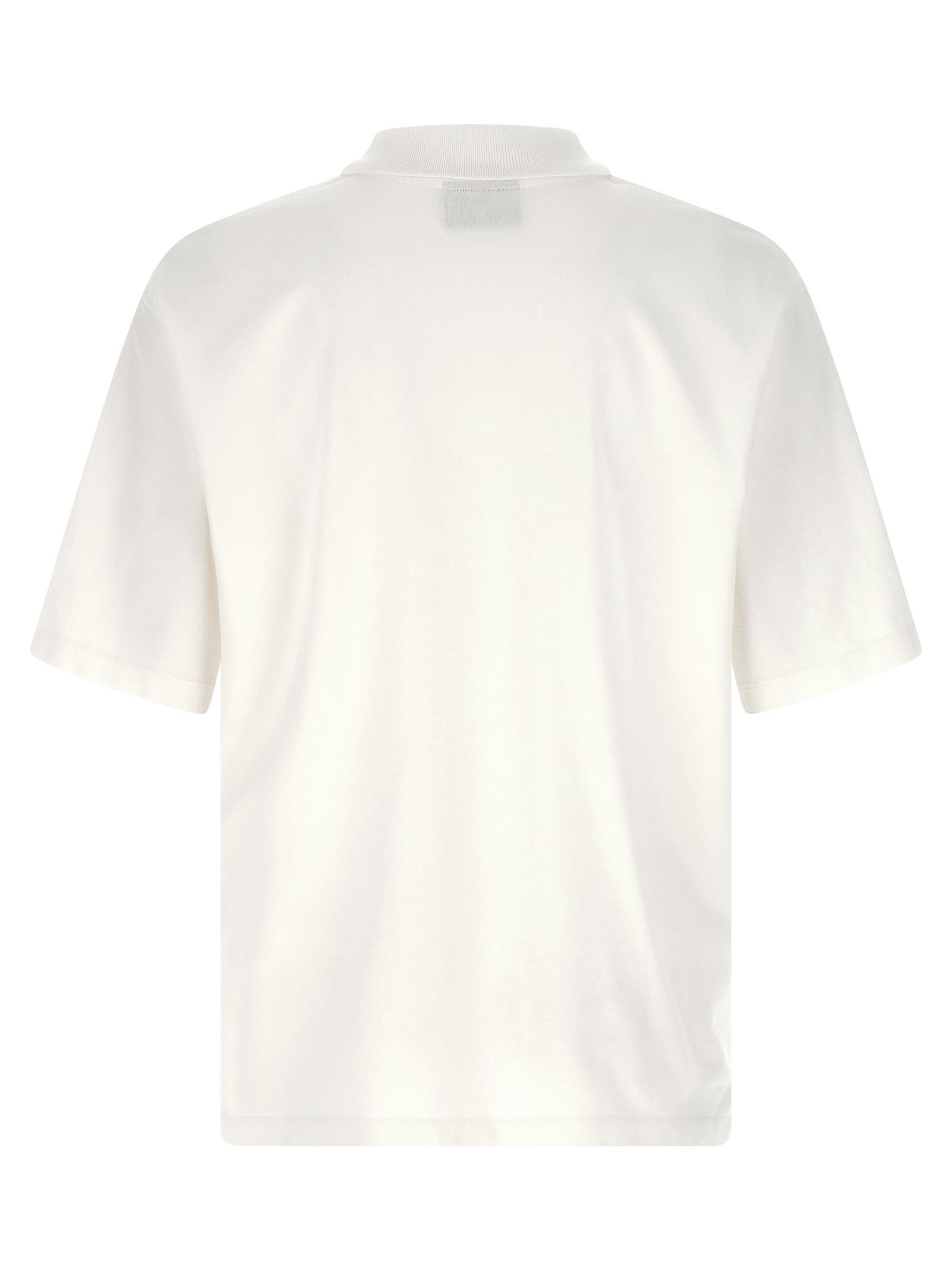 Smooth cotton jersey polo shirt with contrast ‘Dsquared2 Signature’ embroidery on the front, collar and buttons, short sleeves with dropped shoulders, side slits, and asymmetrical hem.