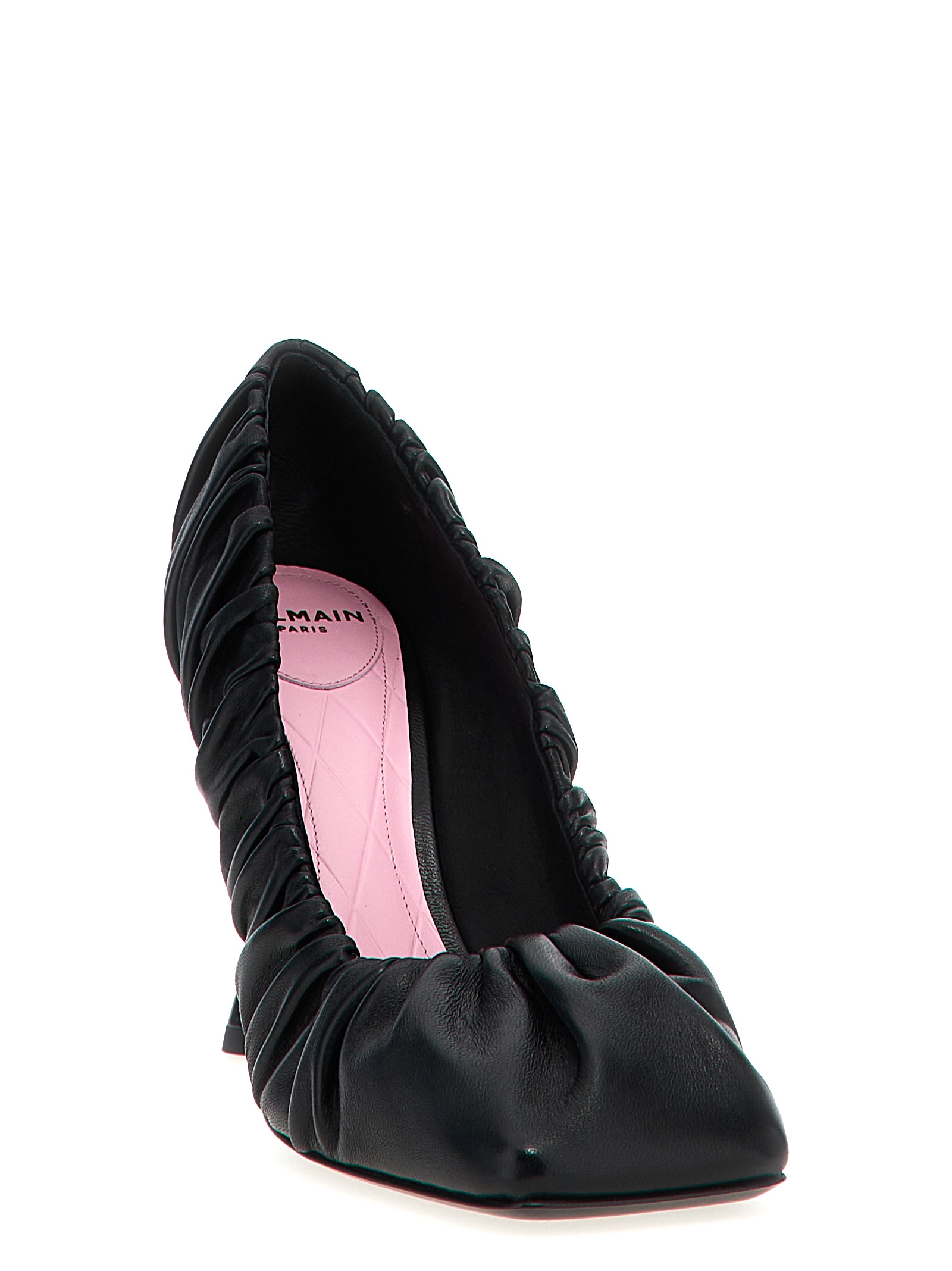 ‘Eden’ crinkled leather pumps with lacquered heel, square toe, leather sole.
