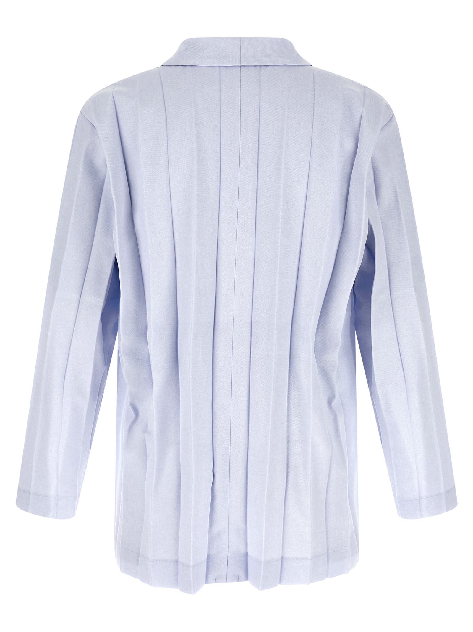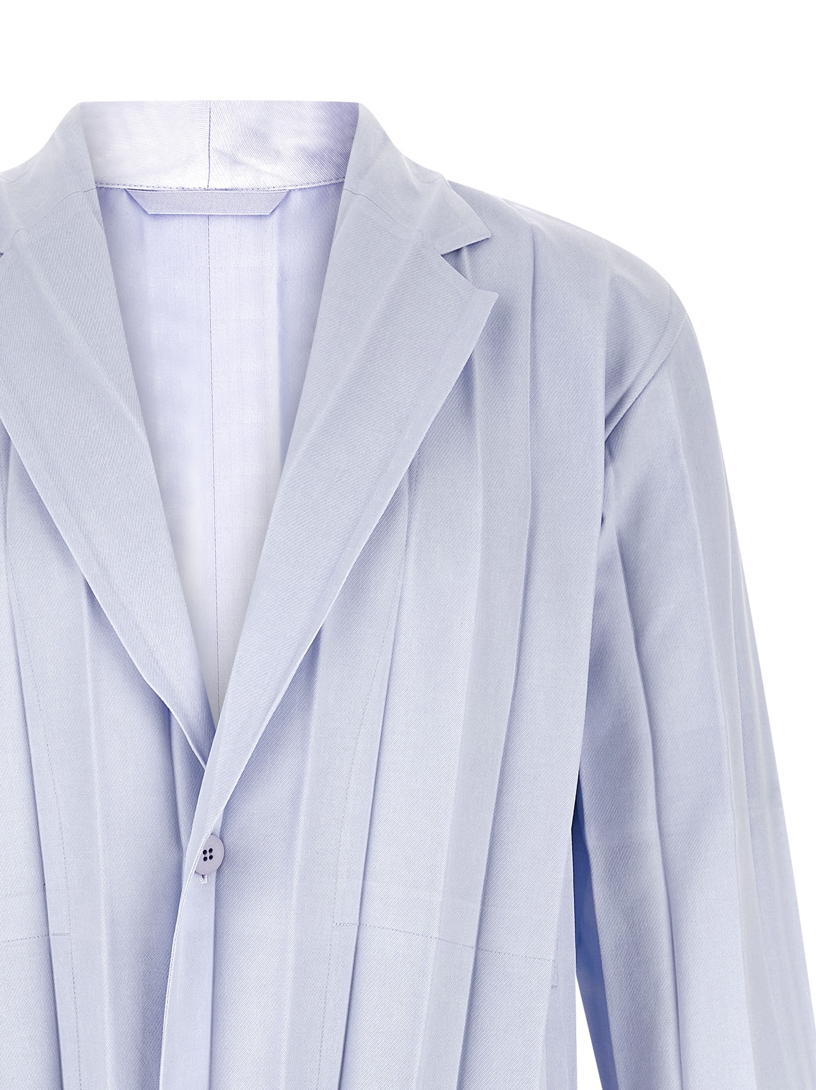 ‘Edge Ensemble’ single-breasted blazer in fabric with wide accordion pleats with semi-gloss finish, two front button closure, mirror lapels, pockets, long sleeves with dropped shoulders, half lining.