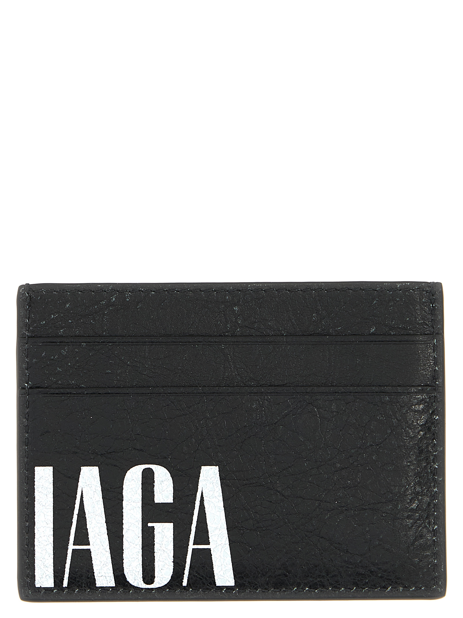 Arena ‘Editor’ lambskin card holder with faded logo print on the front and back.