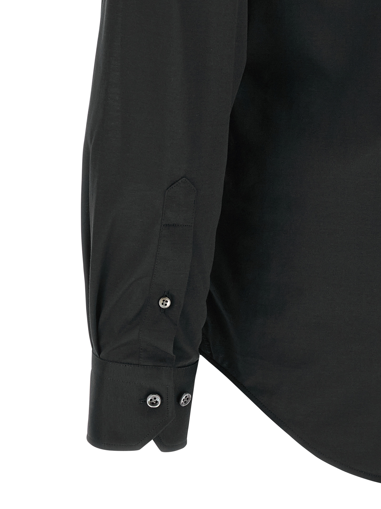 ‘Effortless’ capsule shirt in effortless cotton jersey, Milano collar, front button closure, long cuffed sleeves, rounded hem.